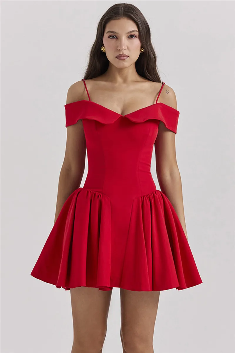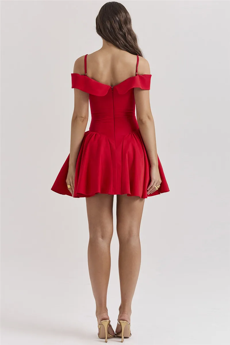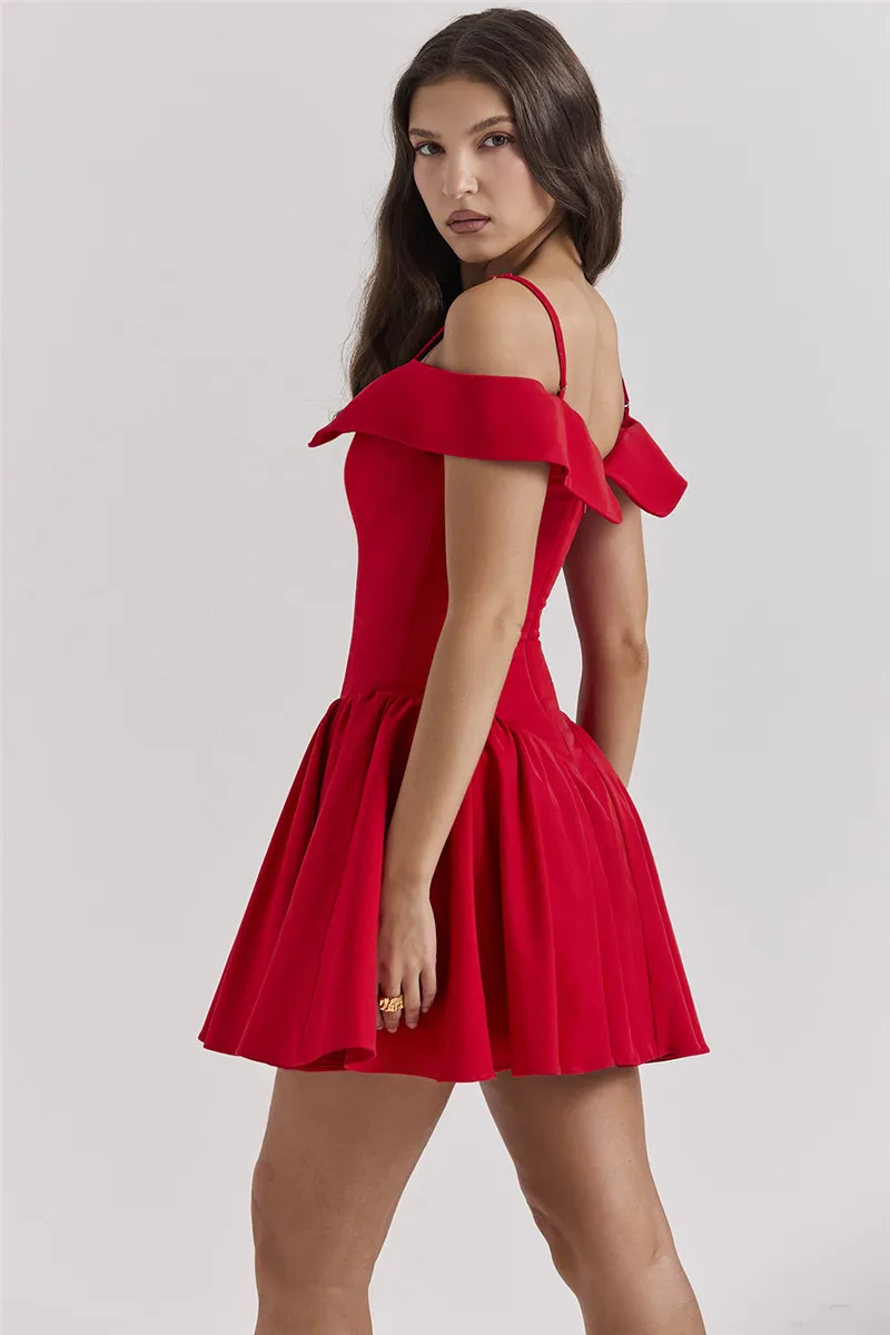 Victoria’s Vogue Elegant Off-shoulder Sexy Mini Dress For Women Fashion Spaghetti Strap Off-shoulder Sleeveless A-line Club Party Dress