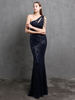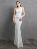 victoria’s vogue Elegant One Shoulder White Sequin Dress Women Beading Evening Dress Party Wedding Maxi Dress