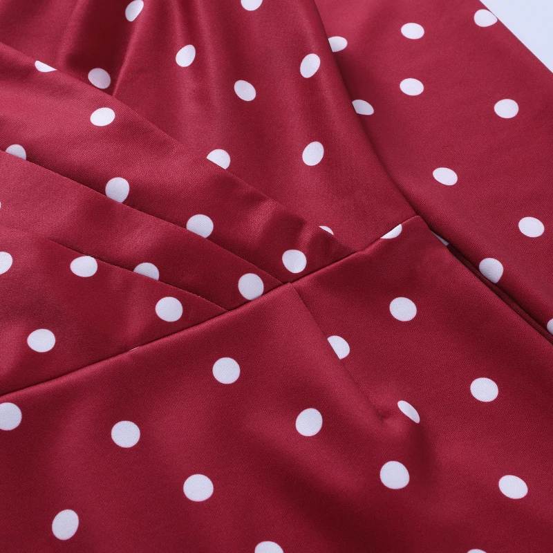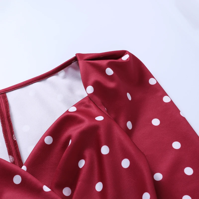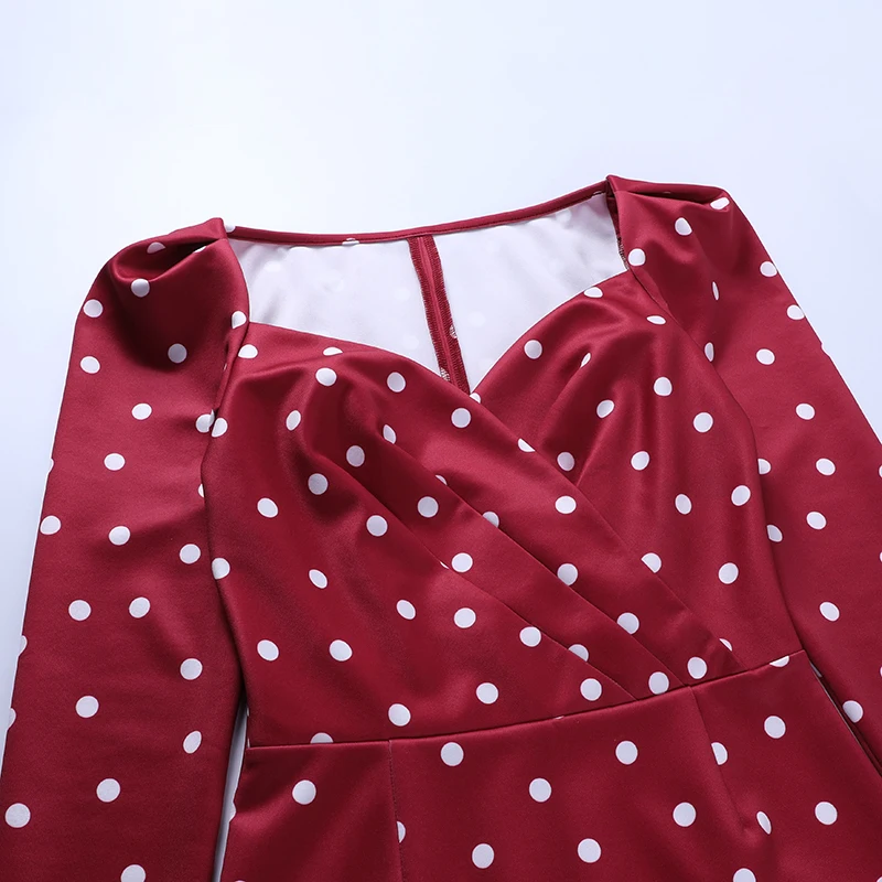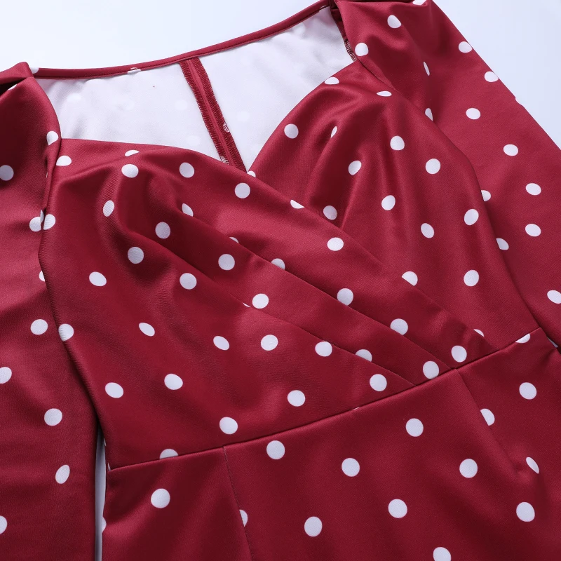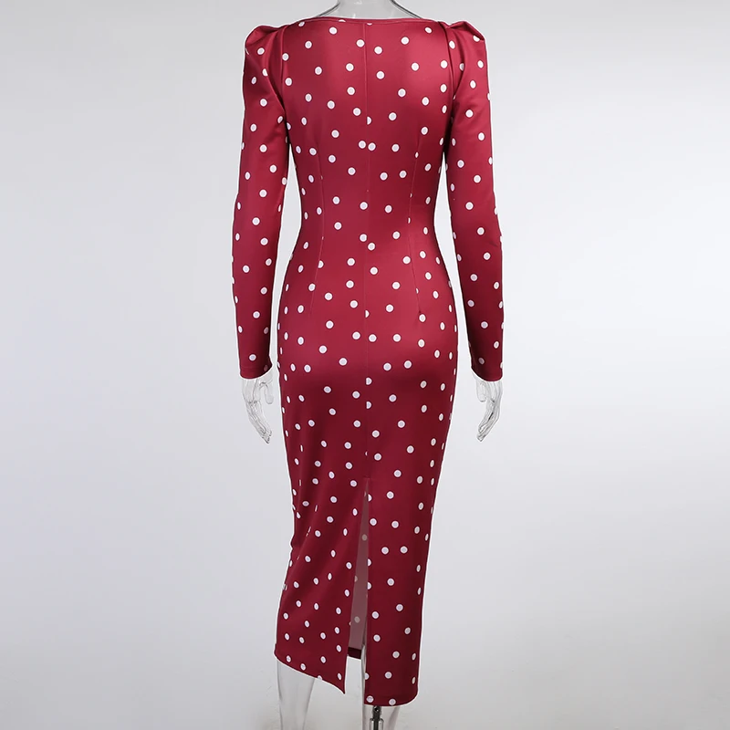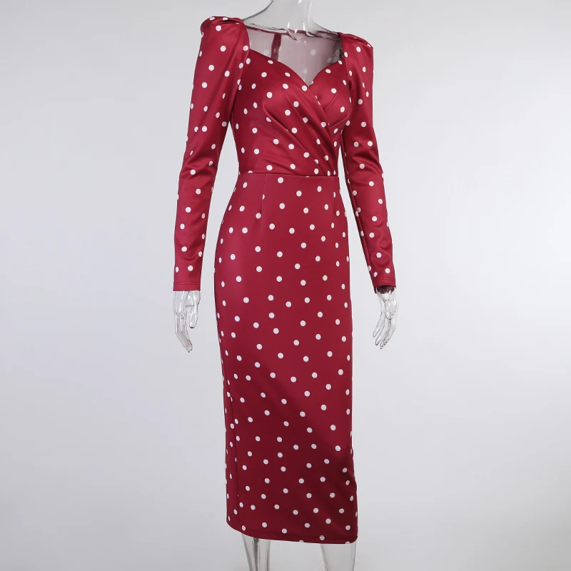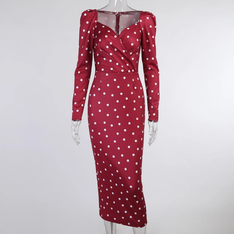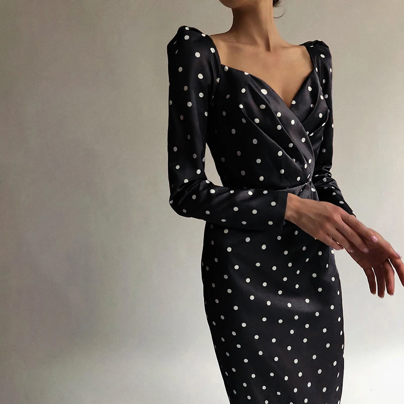 victoria’s vogue Elegant Party Women Dress Mid V Neck Long Sleeve Pencil Dress Hight Waist Casual Office Lady Dots Print Puff Sleeve