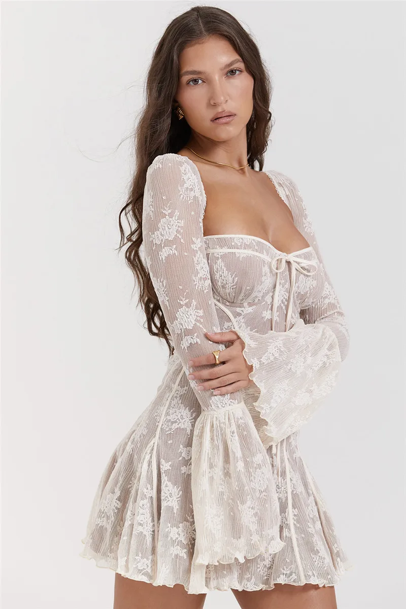 Victoria’s Vogue Elegant Print Mini Dress For Women Autumn Winter New Square Collar Long Sleeve Backless Loose Club Party Sexy Dress