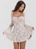 Victoria’s Vogue Elegant Print Mini Dress For Women Autumn Winter New Square Collar Long Sleeve Backless Loose Club Party Sexy Dress