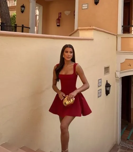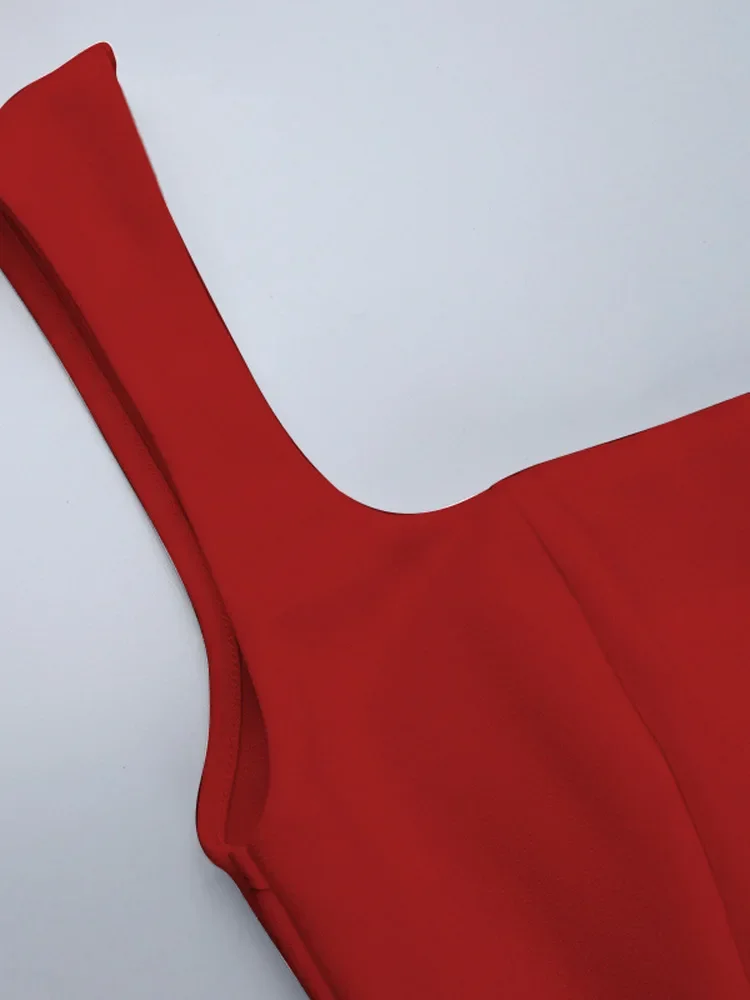 Victoria’s Vogue Elegant Red Square Neck Suspender Dress Women Fashion Slim Sleeveless Mini Dresses Summer Chic Ladies Club Party Vestidos