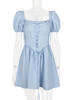 Victoria’s Vogue Elegant Short Puff Sleeve Sexy Mini Dress Women Fashion Square Collar Backless A-line Pleated Club Party Dress Vintage