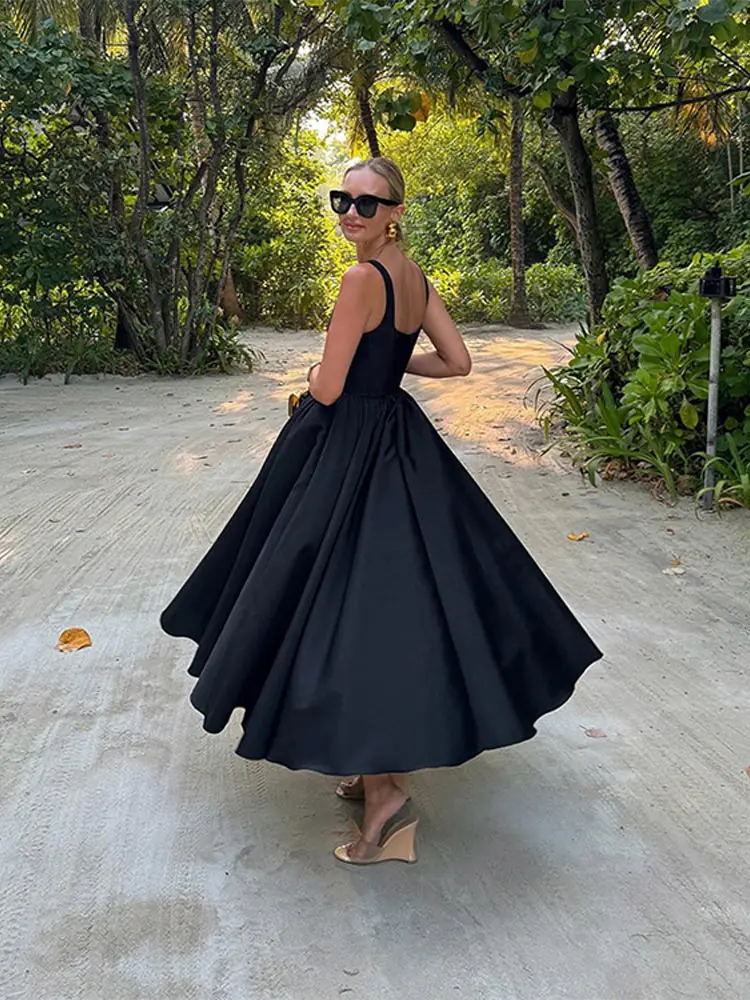 Victoria’s Vogue Elegant Solid Chest Wrap Suspender Dress Women Fashion Square Neck Sleeveless Holiday Vestidos Casual Female Black Streetwear