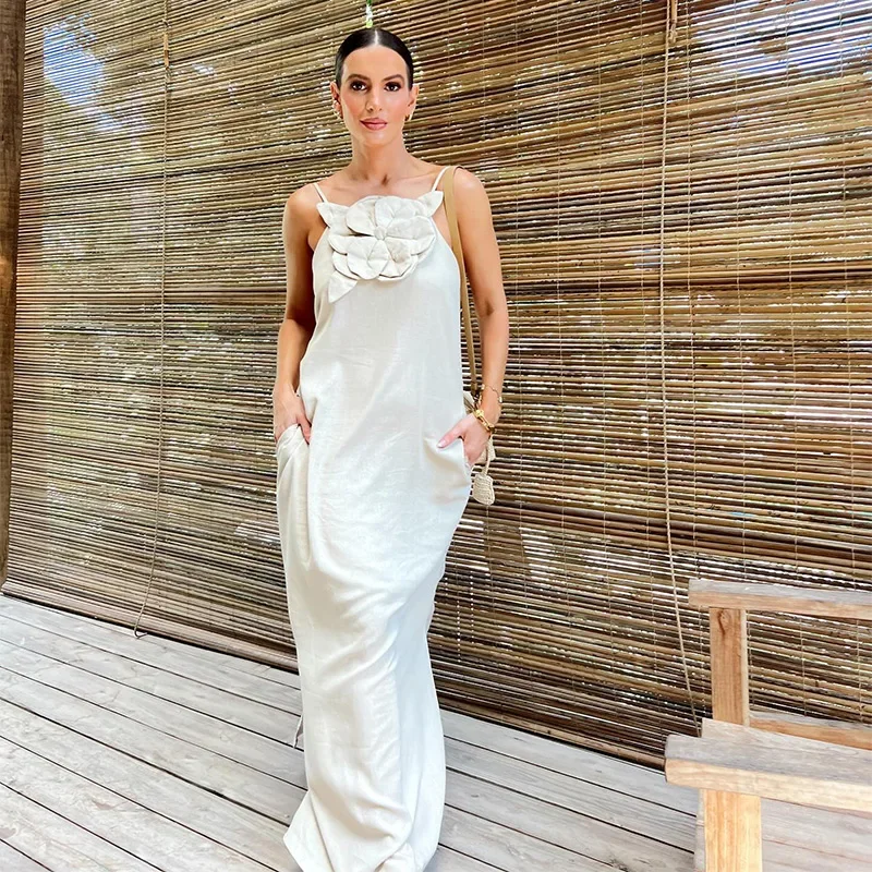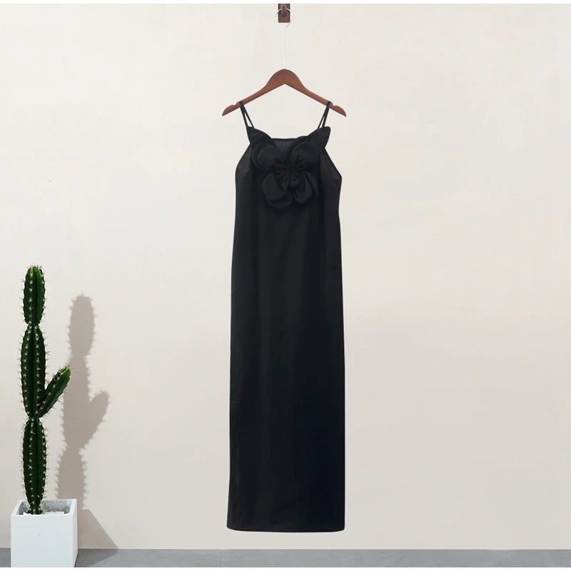 Victoria’s Vogue Elegant Solid Color 3d Flower Maxi Dress Fashion Halter Sleeveless Backless Split Vestido Female 2024 Banquet Party Long Robe