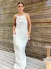Victoria’s Vogue Elegant Solid Color 3d Flower Maxi Dress Fashion Halter Sleeveless Backless Split Vestido Female 2024 Banquet Party Long Robe
