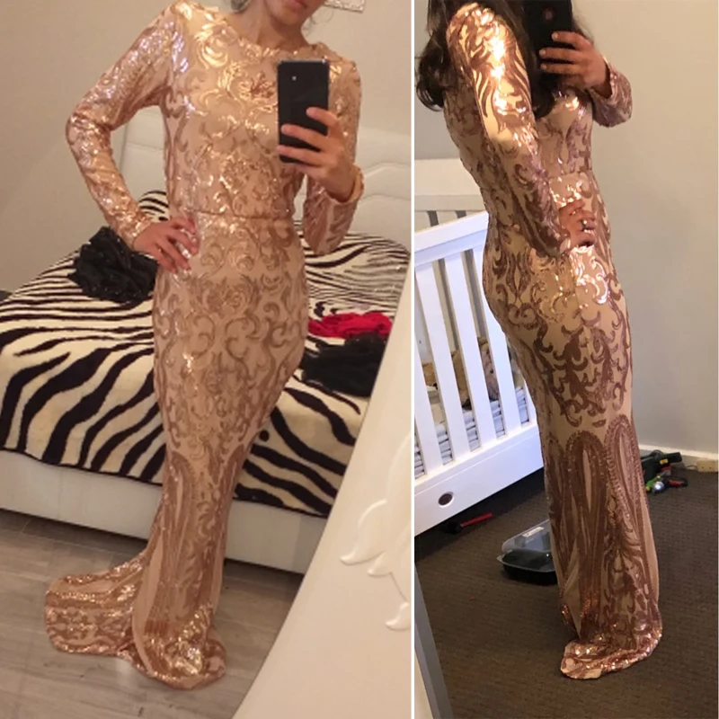 victoria’s vogue Elegant Vestido Full Sleeved Maxi Dress Black Sequined Party Dress Stretch Floor Length Bodycon Maxi Dress