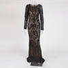 victoria’s vogue Elegant Vestido Full Sleeved Maxi Dress Black Sequined Party Dress Stretch Floor Length Bodycon Maxi Dress