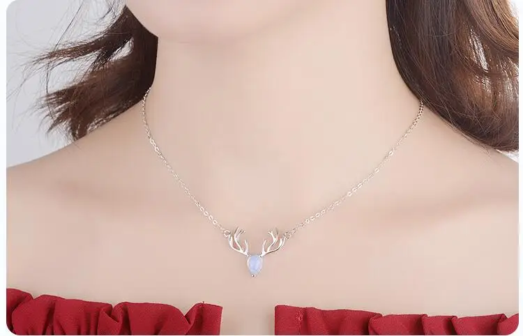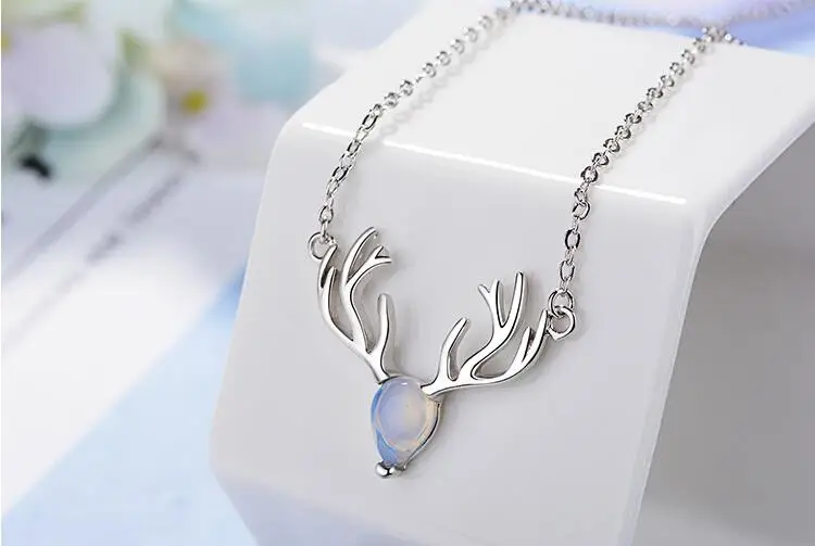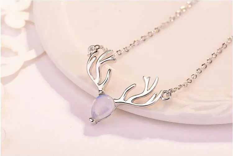 Victoria’s Vogue Elk Fashion Exquisite Temperament 925 Sterling Silver Jewelry Moonstone Crystal Deer Clavicle Chain Pendant Necklaces H329