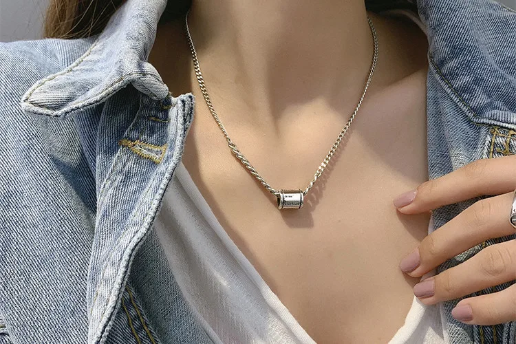 Victoria’s Vogue European And American Port Style Design Spring 925 Sterling Silver Retro Cylindrical Letter Clavicle Chain Necklaces