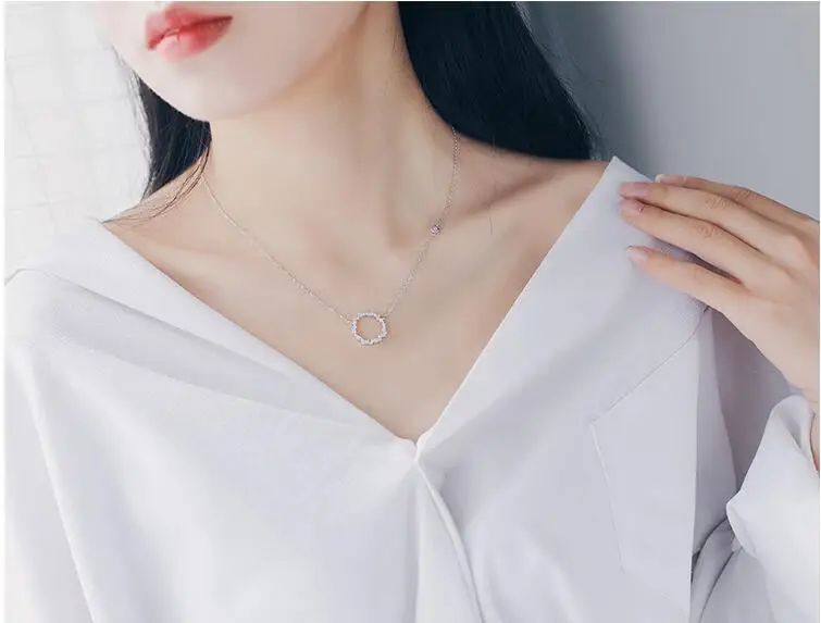 Victoria’s Vogue Exquisite 925 Sterling Silver Jewelry Christmas Circle Blue Sea Legend Female Personality Pendant Necklaces