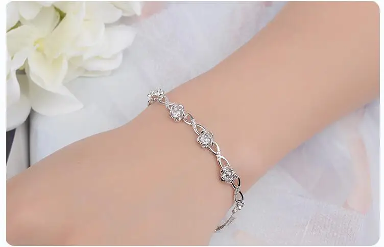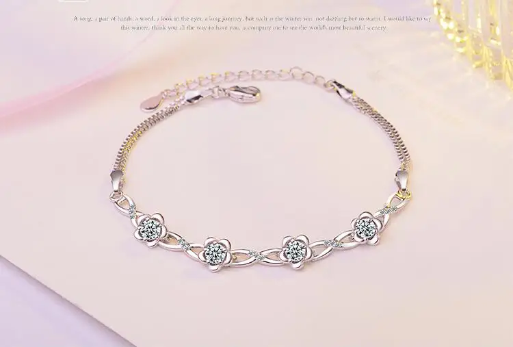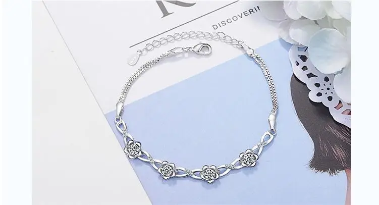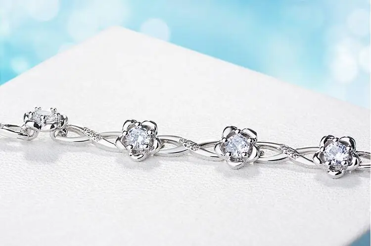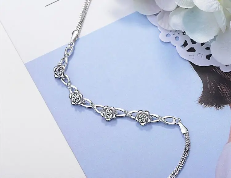 Victoria’s Vogue Exquisite New Fashion Sweet Popular 925 Sterling Silver Jewelry Crystal Small Fresh Flowers Female Beautiful Bracelets