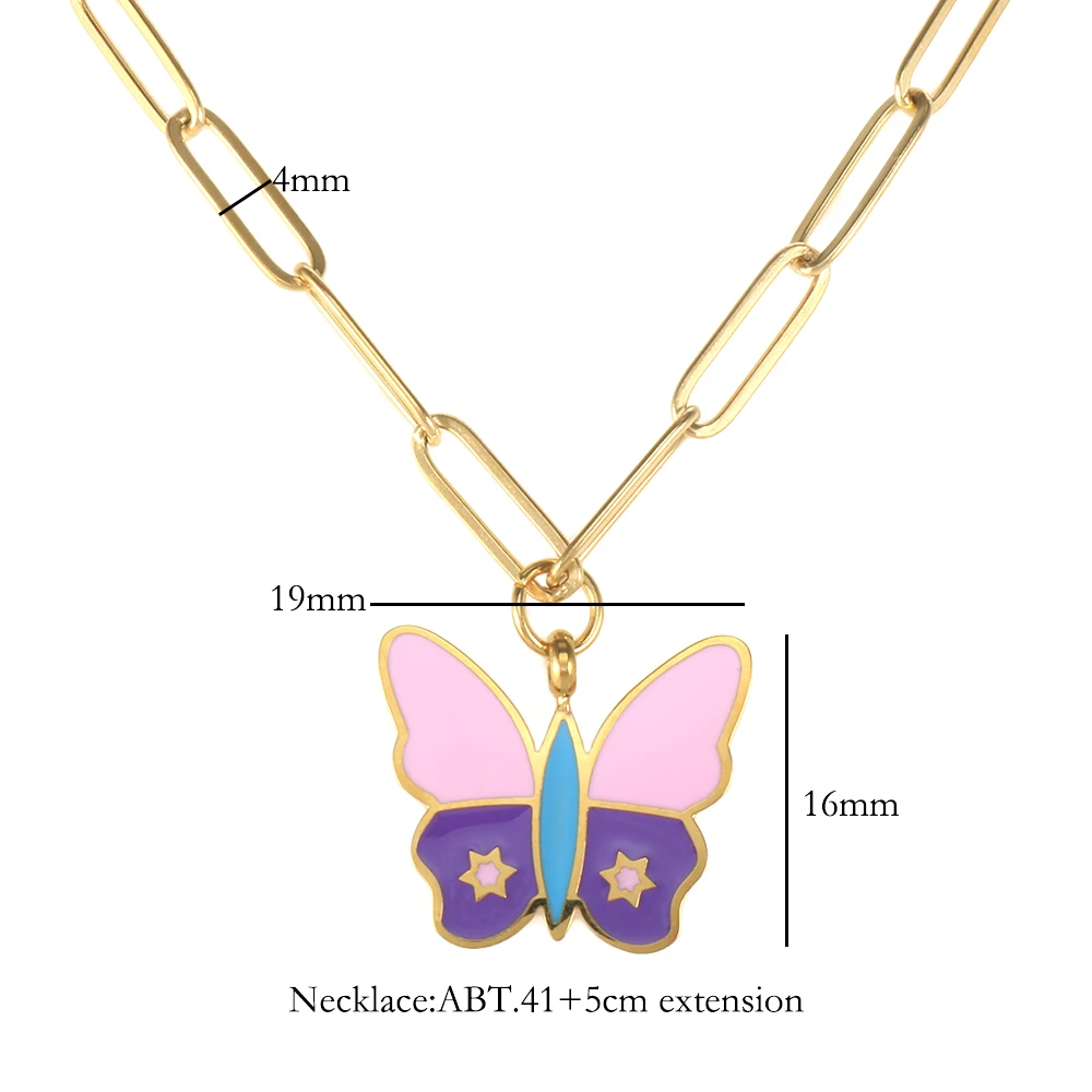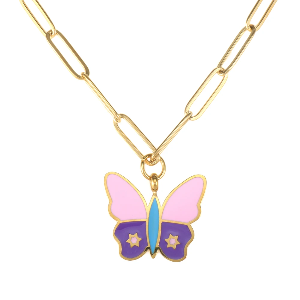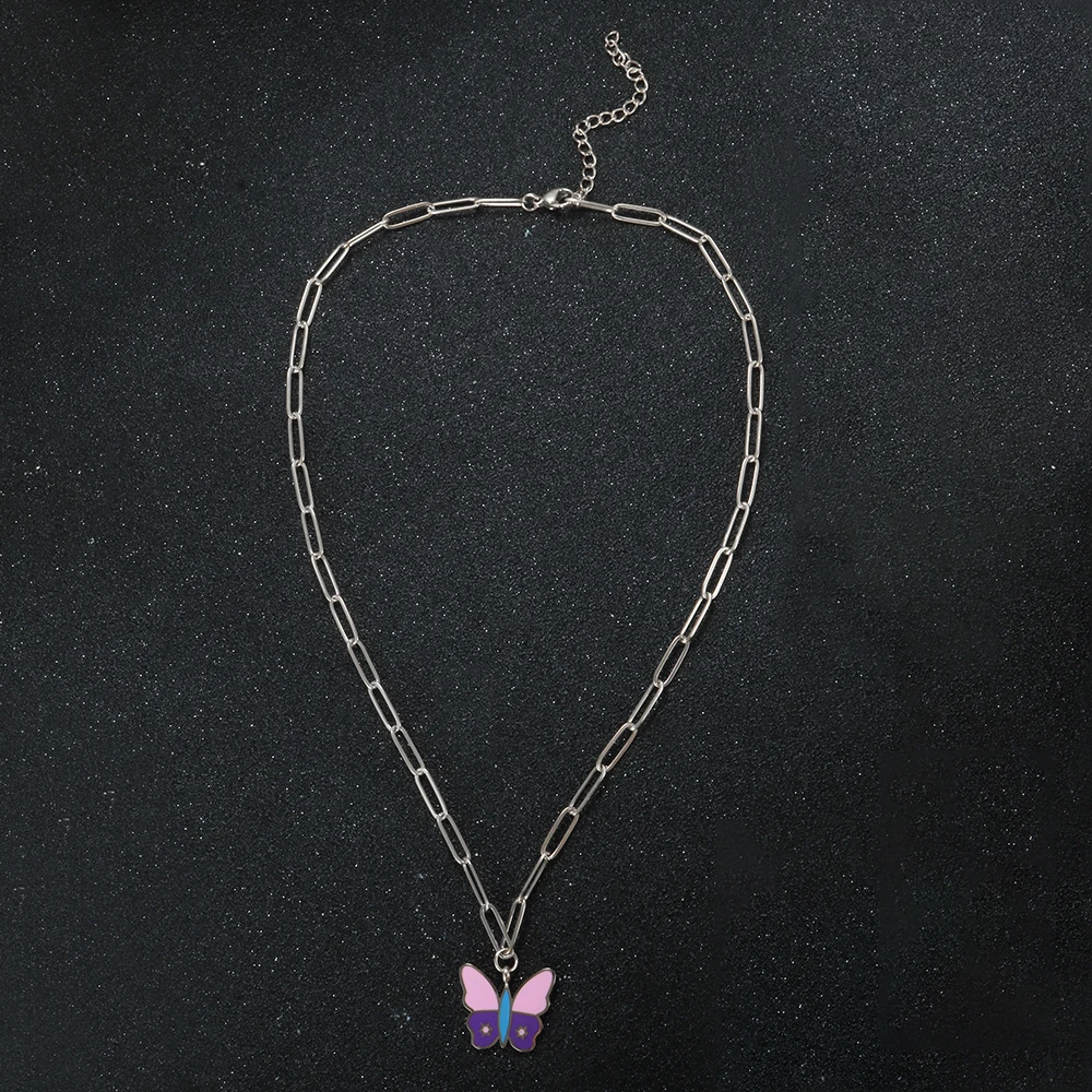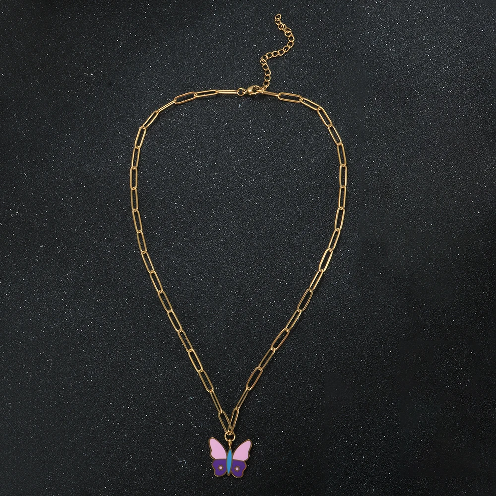 Name: Butterfly Pendant Necklace Pink Purple Enamel Dripping Oil Necklace For Women