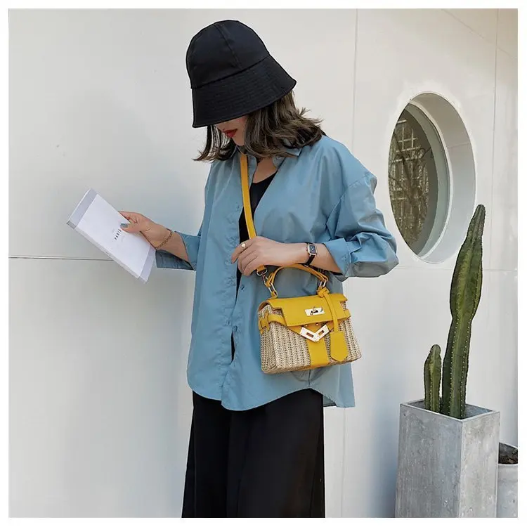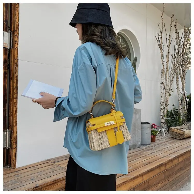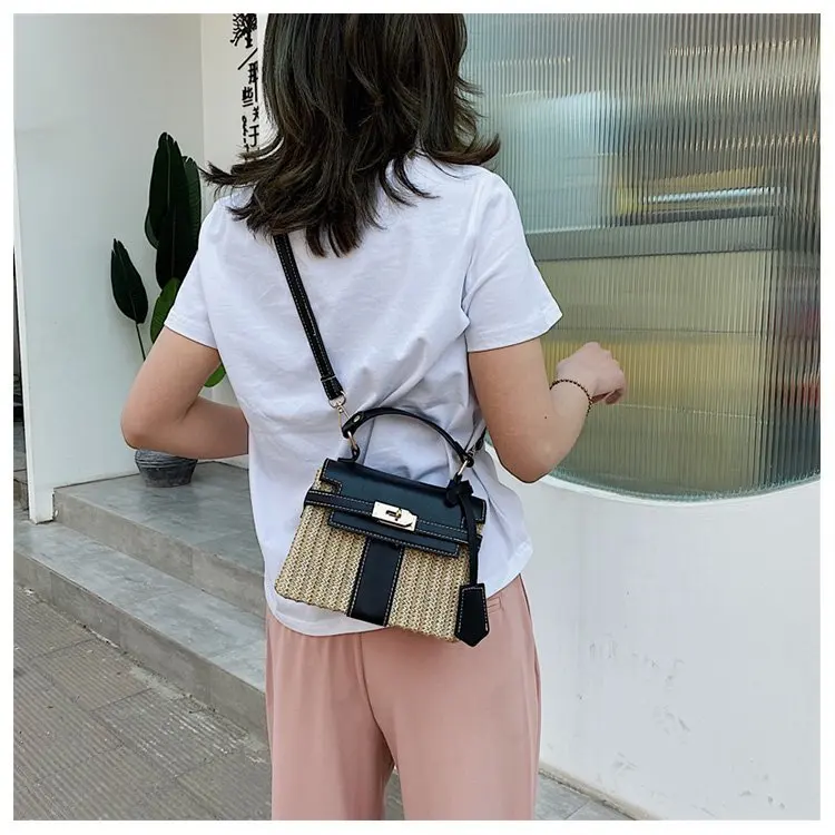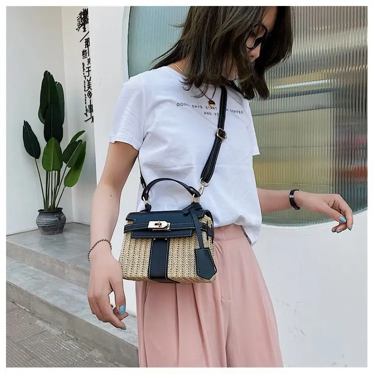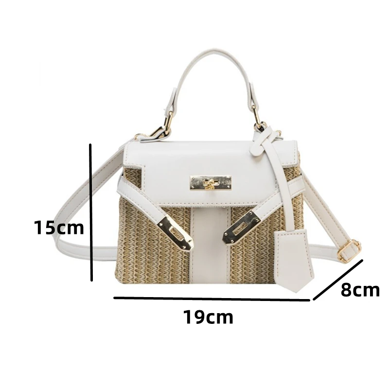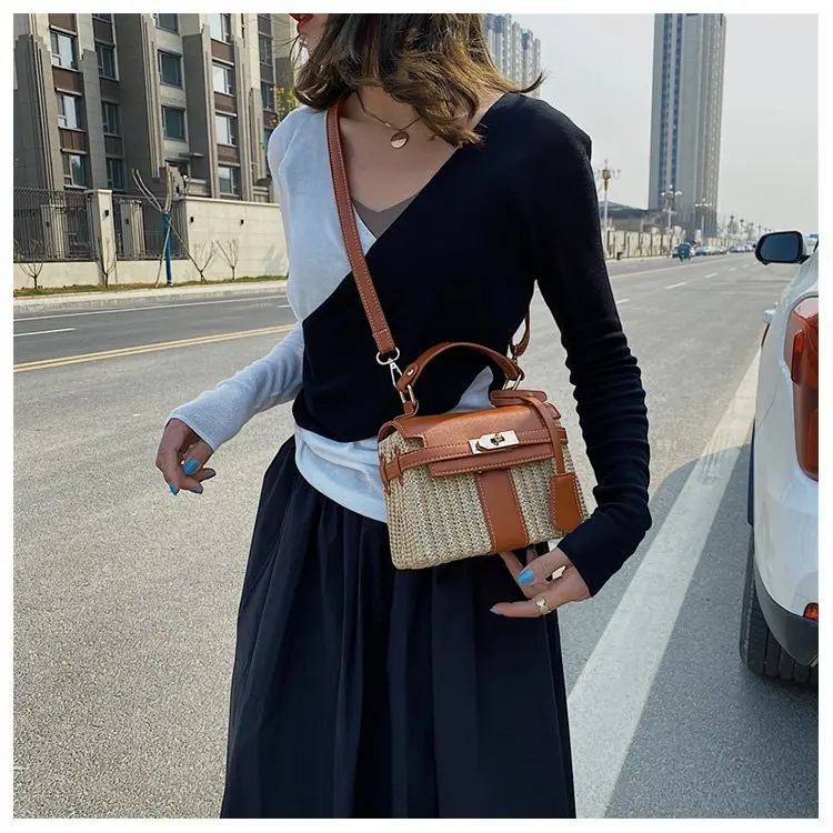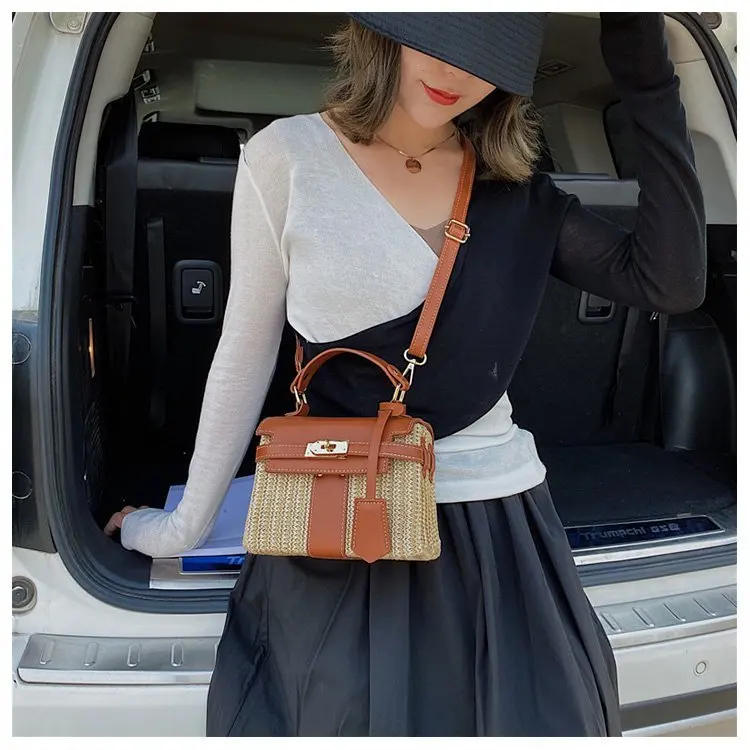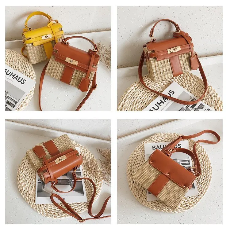 Victoria’s Vogue Fashion Box Straw Women Handbags Designer Wicker Woven Shoulder Crossbody Bags Chic Lock Pu Summer Beach Rattan Small Flap