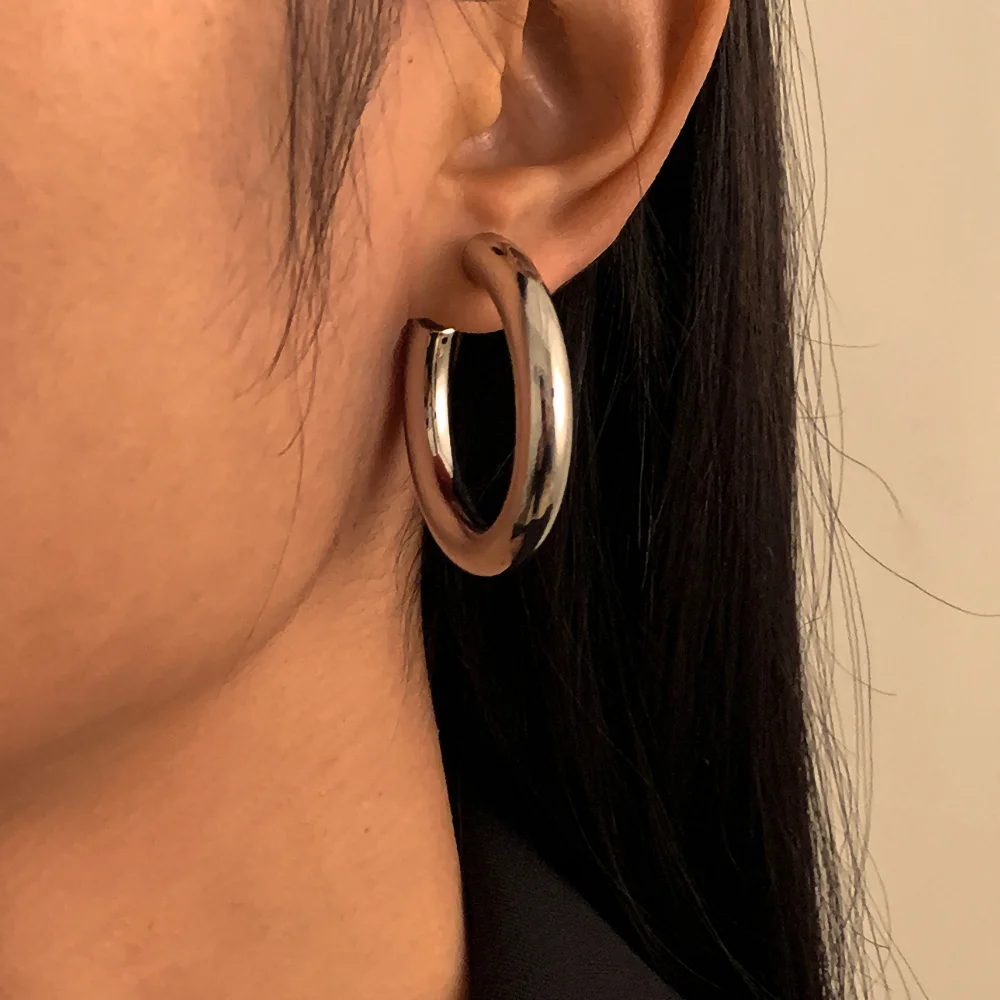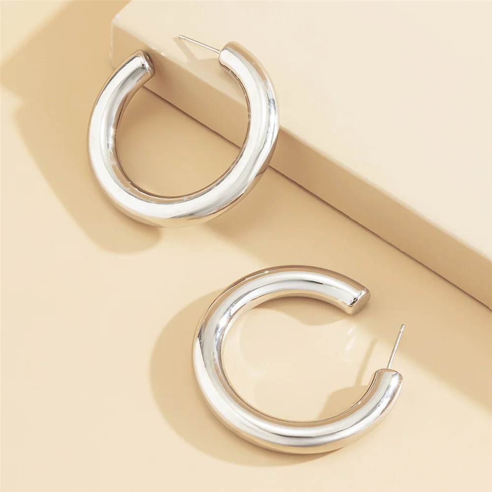 victoria’s vogue Fashion CCB Plastic Geometric Round Circle Hoop Earrings Punk Small Loop Earrings for Women Girls Party Jewelry Gift