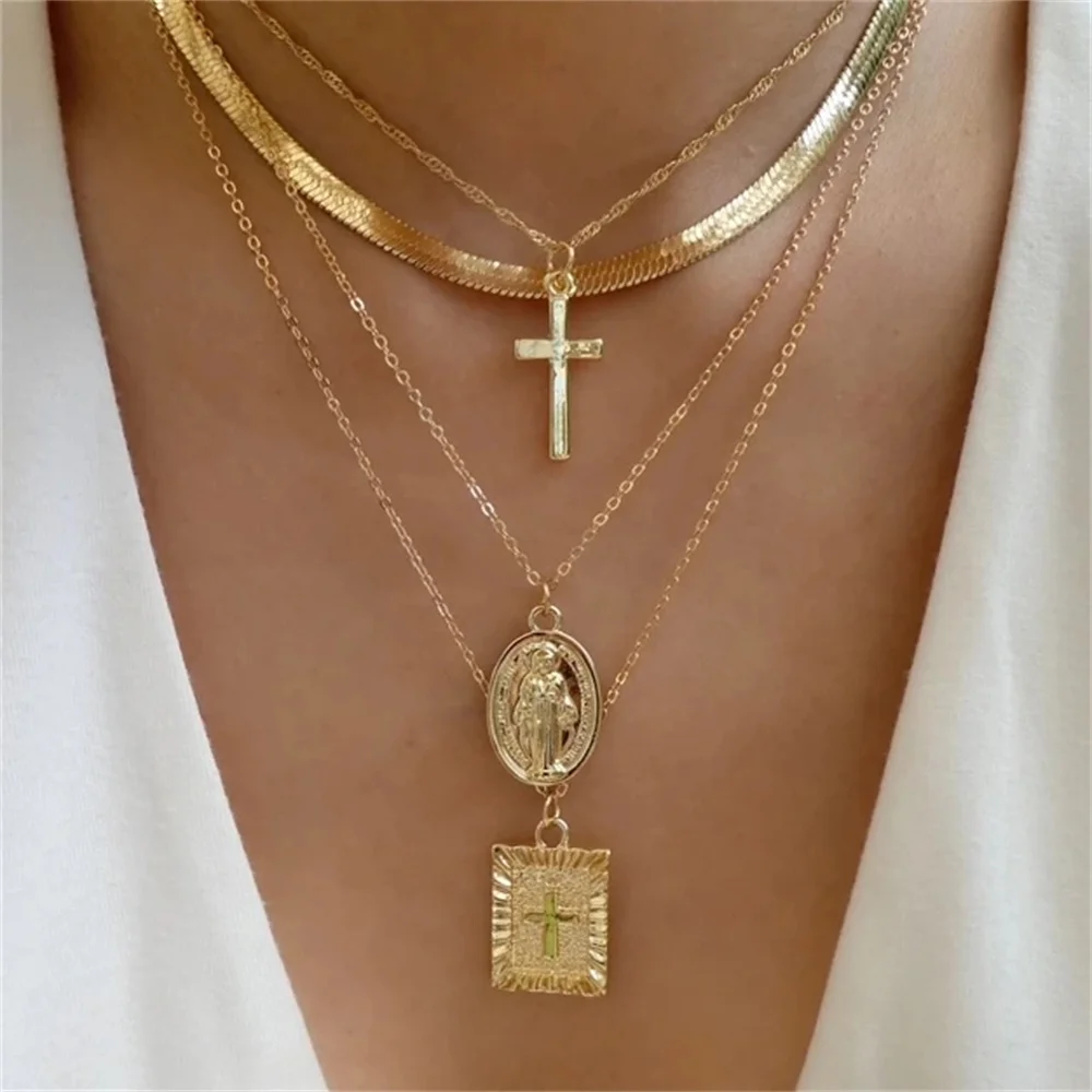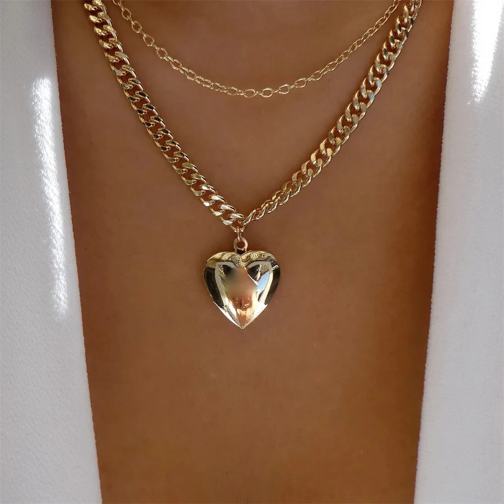 victoria’s vogue Fashion Gold Heart-Shaped Necklace For Women Girls Multilayer Geometric Hollow Heart Necklace Jewelry Party