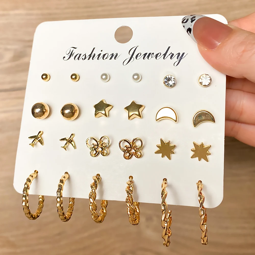 victoria’s vogue Fashion Gold Metal Earring Set Geometric Butterfly Star Moon Circle Vintage Earrings for Women Jewelry 2022