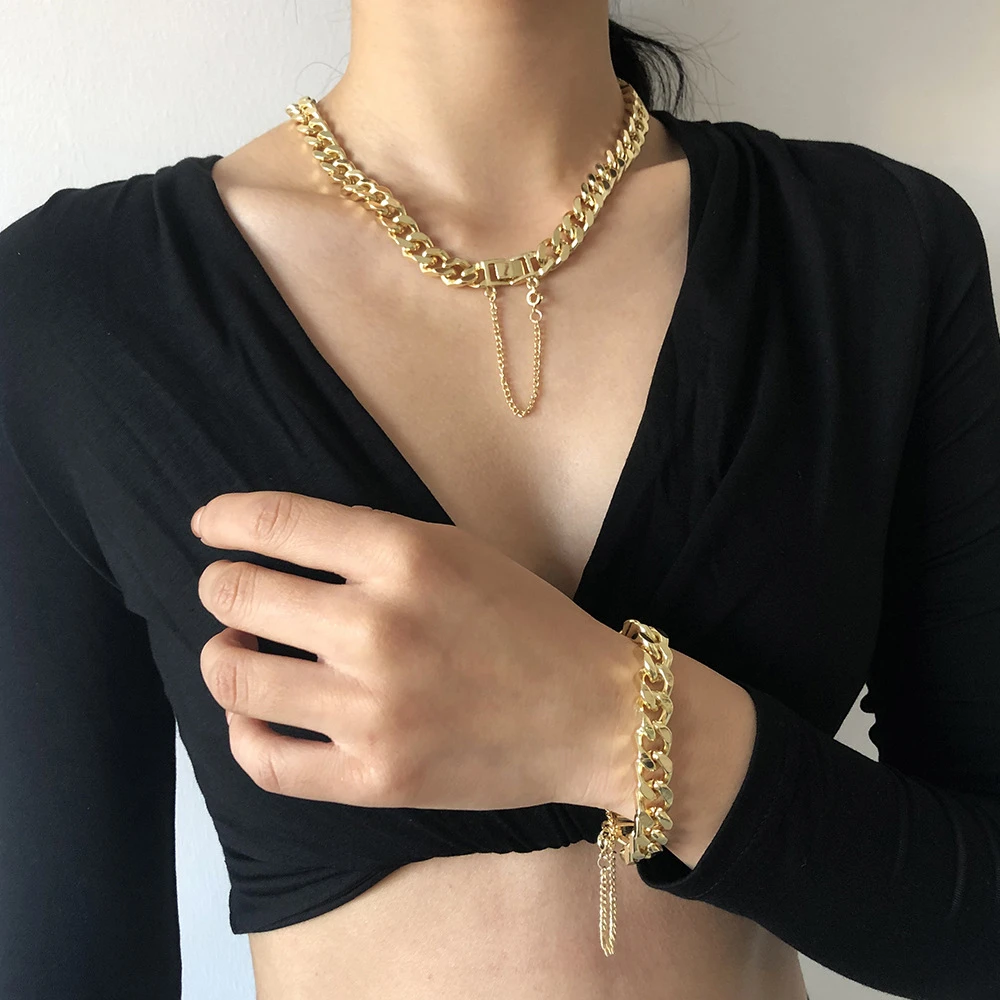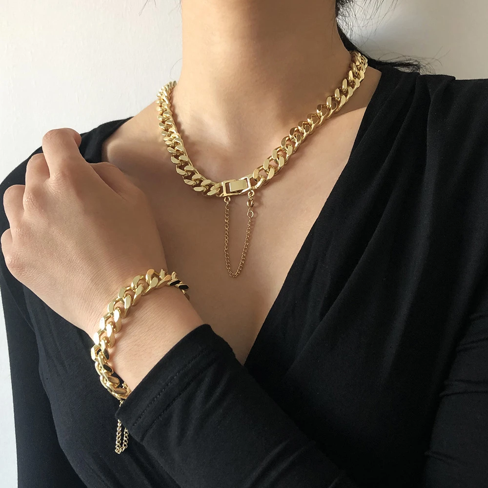 Victoria’s Vogue Fashion Gold Punk Thick Chain Multifunctional Necklace For Women Female 2021 Vintage Adjustable Collar Jewelry Gift