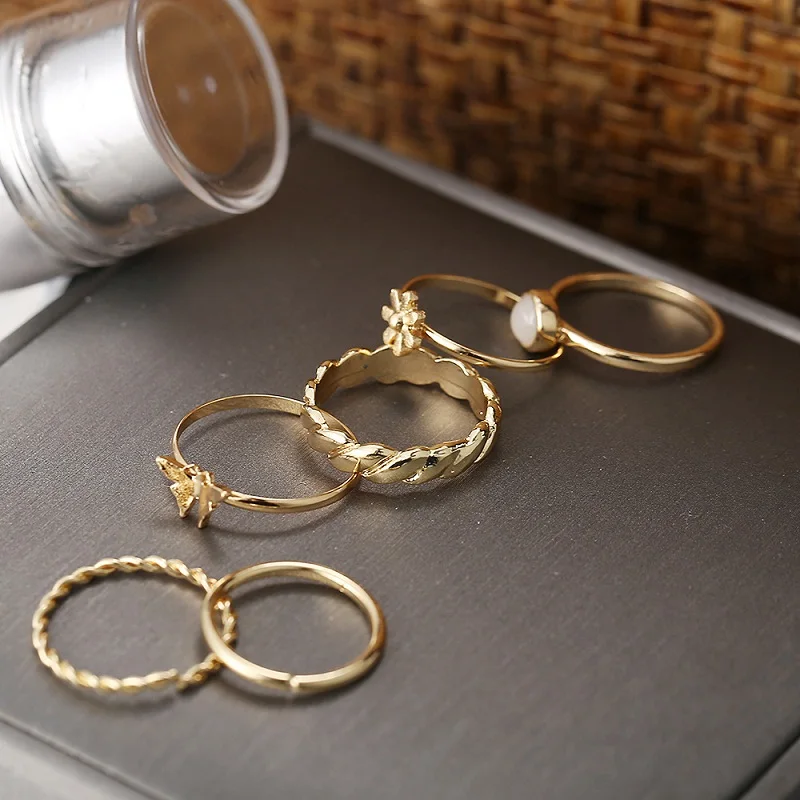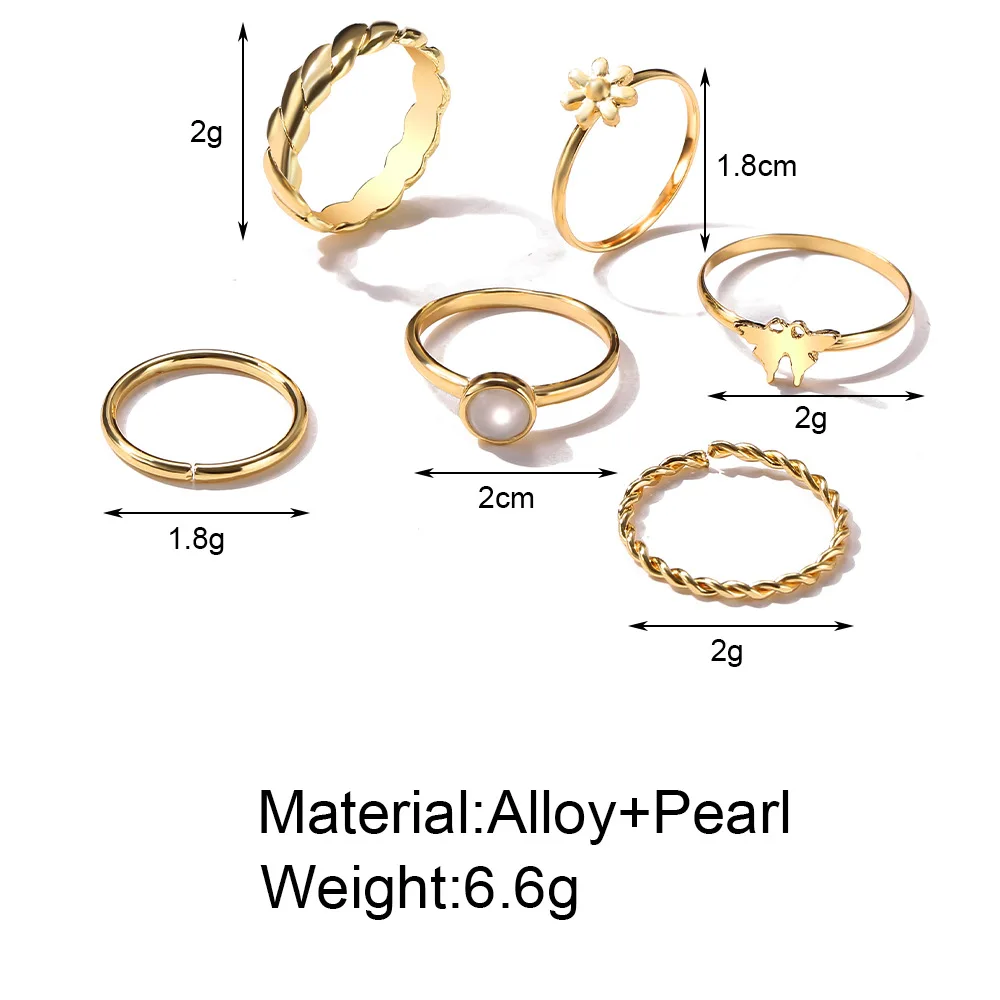 Victoria’s Vogue Fashion Imitation Pearl Knuckle Ring Set For Women Geometric Butterfly Cross Bow Finger Rings Girls Party Beach Jewelry Gifts