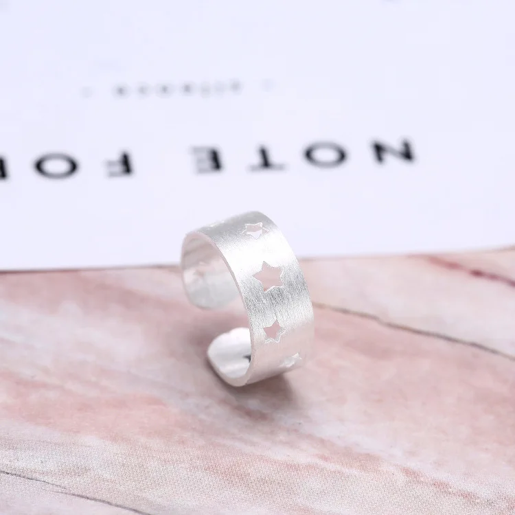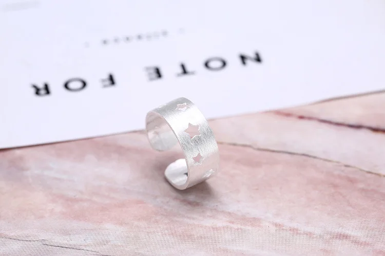 victoria’s vogue Fashion Korean Style Temperament 925 Sterling Silver Jewelry Hollow Five Pointed Star Personality Opening Rings