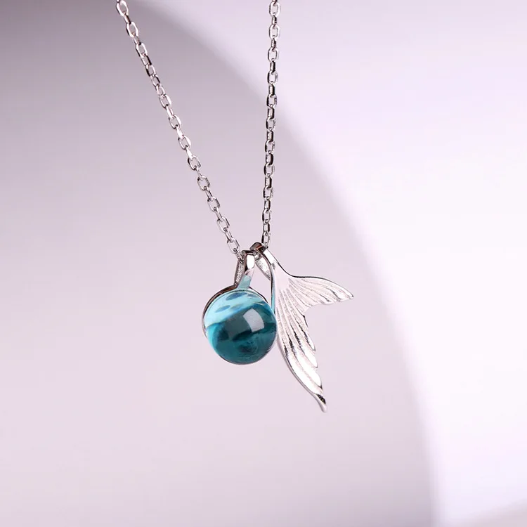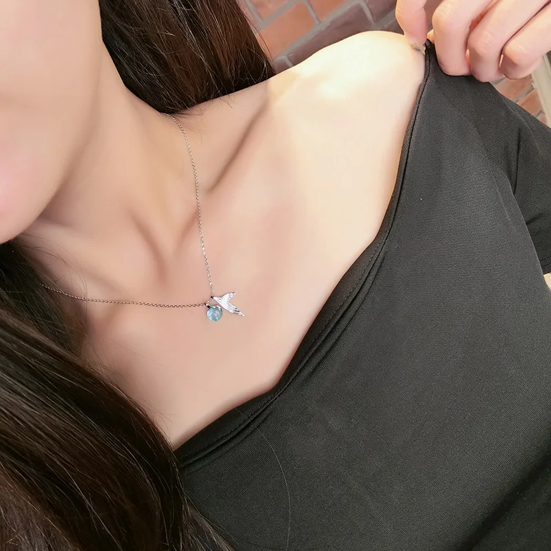 Victoria’s Vogue Fashion Mermaid Foam Clavicle Chain 925 Sterling Silver Jewelry Whale Tail Crystal Temperament Pendant Necklaces
