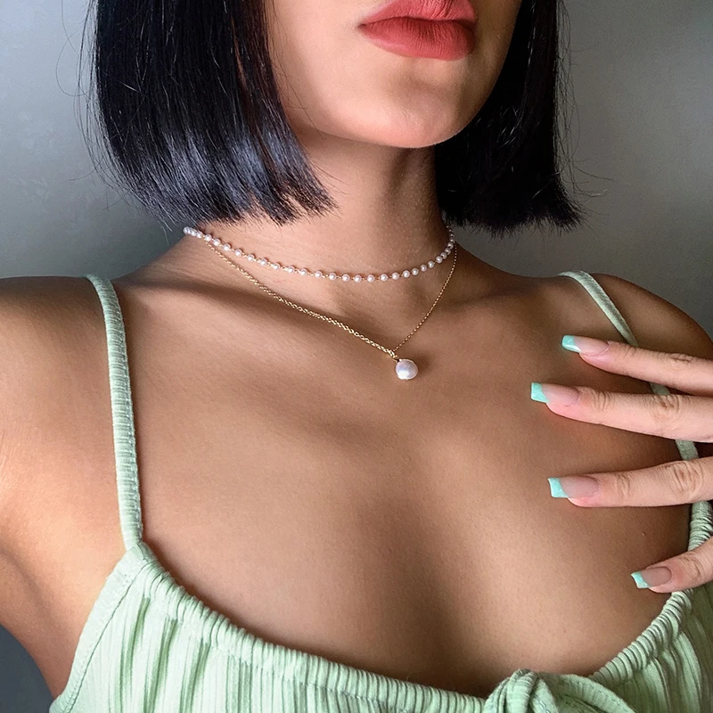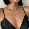 victoria’s vogue Fashion Multi-layered Snake Chain Necklace For Women Vintage Gold Coin Pearl Choker Sweater Necklace Party Jewelry Gift