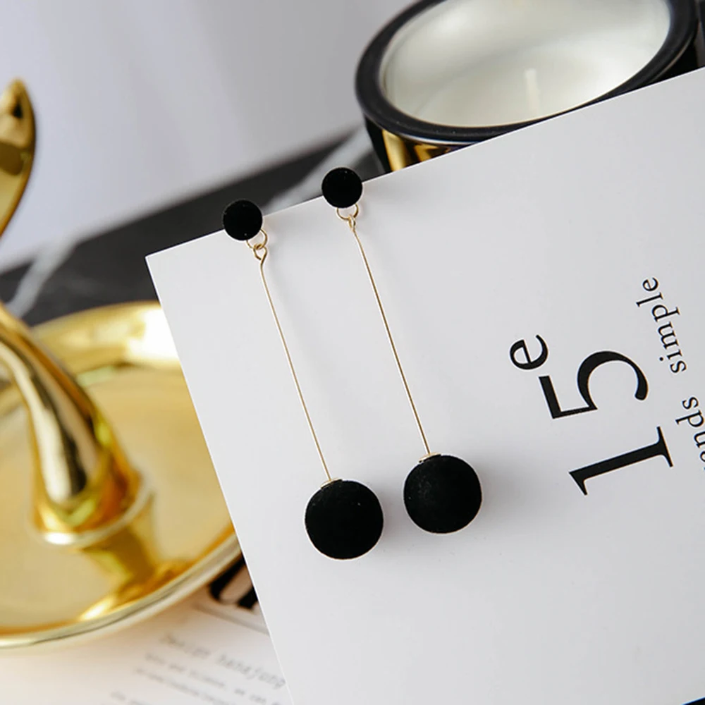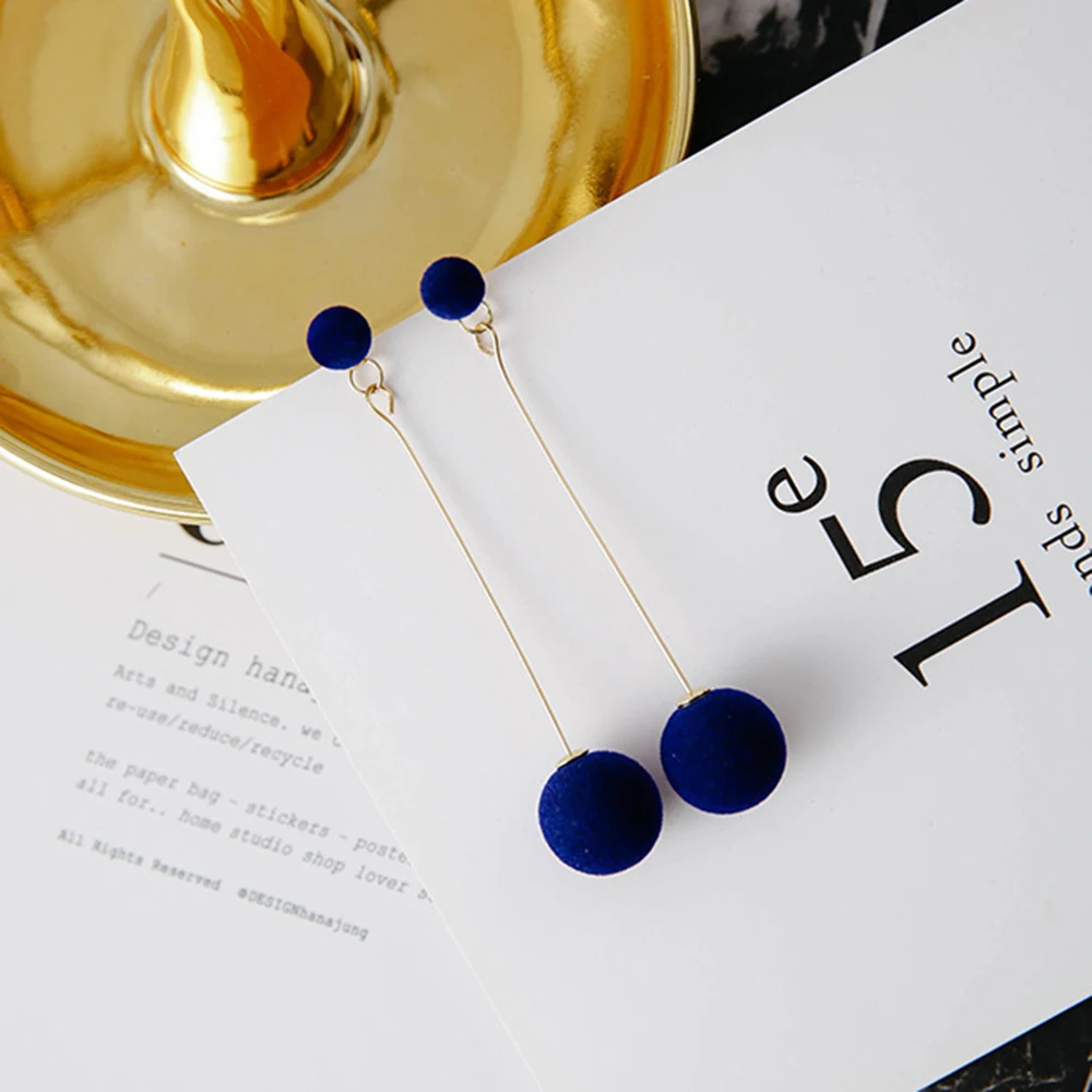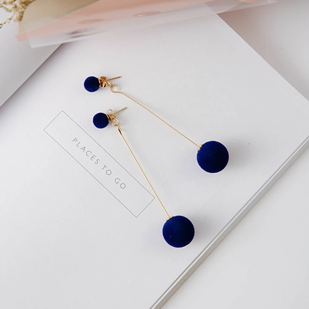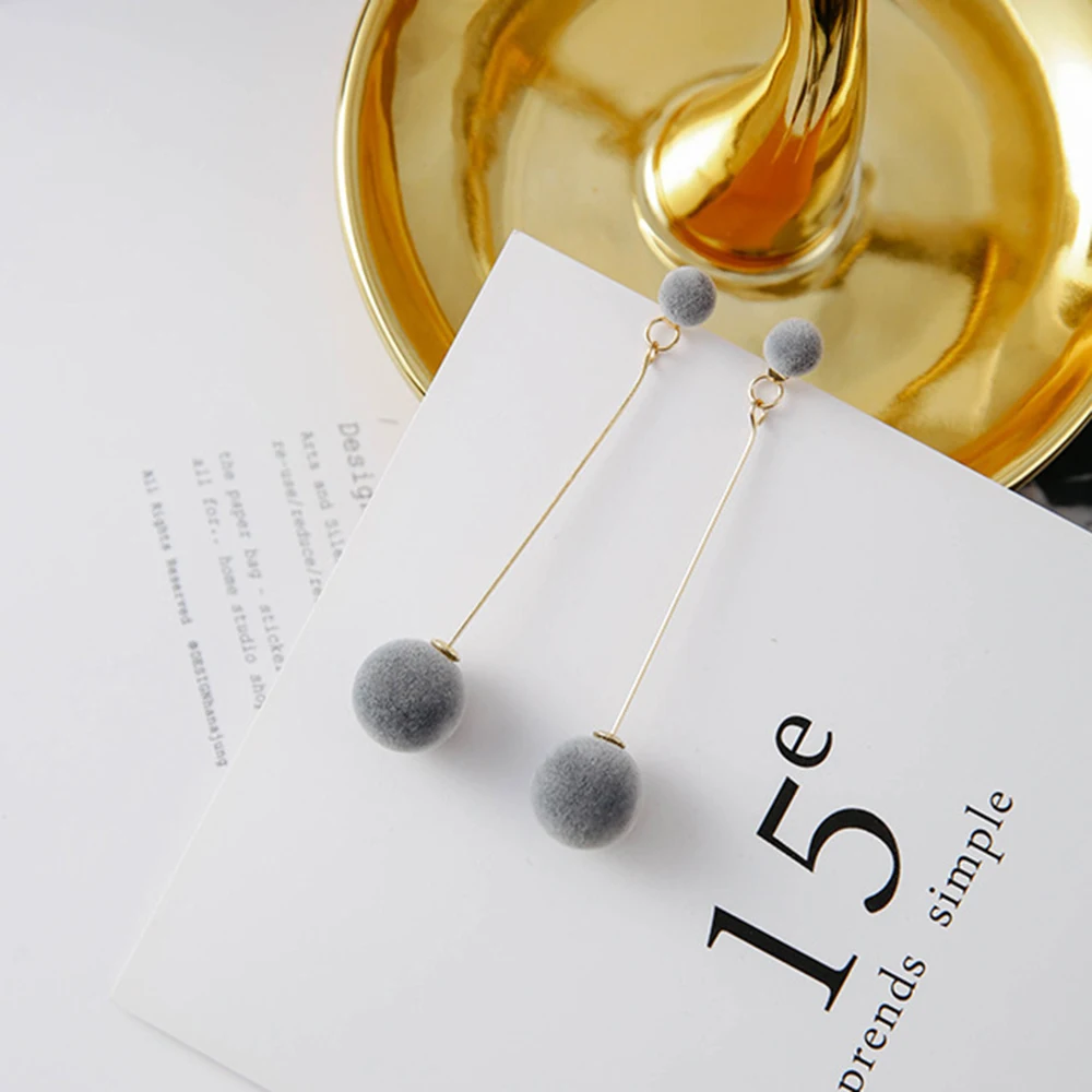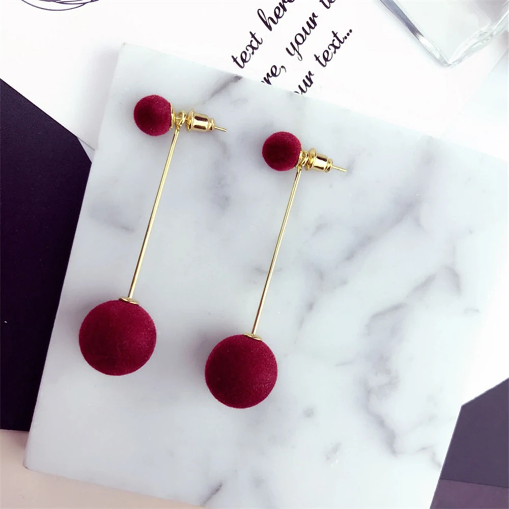 victoria’s vogue Fashion Red Black Plush Ball Drop Earrings For Women Korea Personality Round Long Tassel Earrings Statement Jewelry Gift