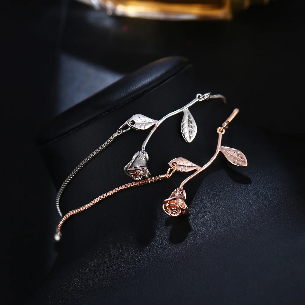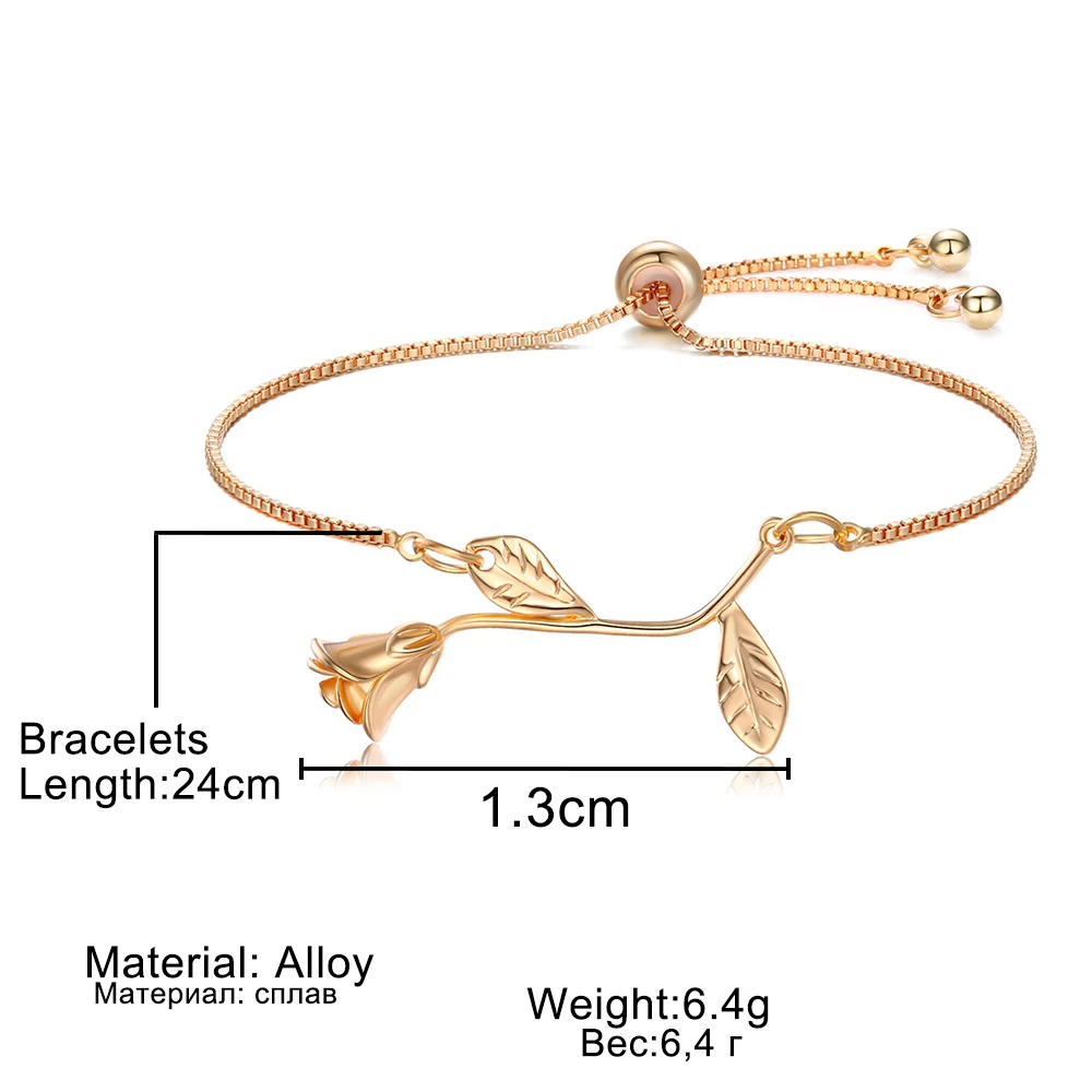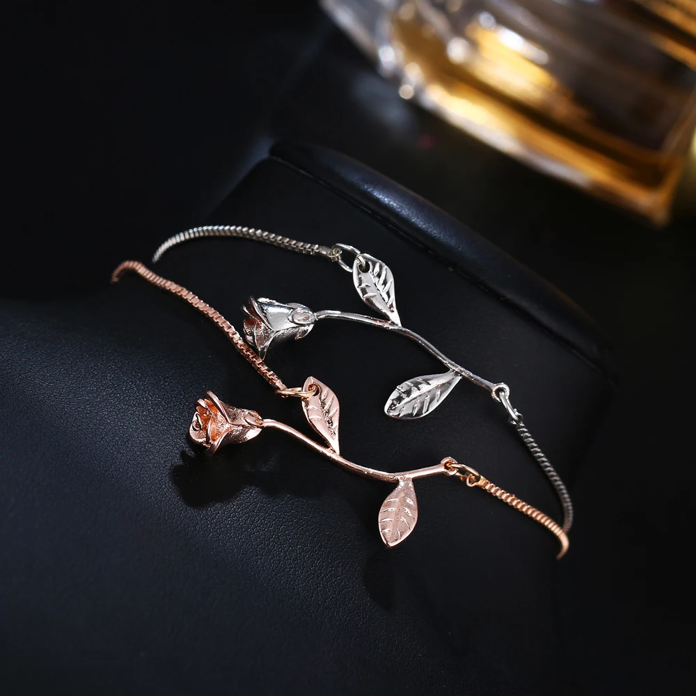 victoria’s vogue Fashion Rose Flower Charm Bracelet For Women Girl Bracelet Bangle Adjustable Wedding Bridal Jewelry New
