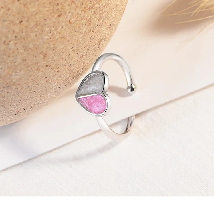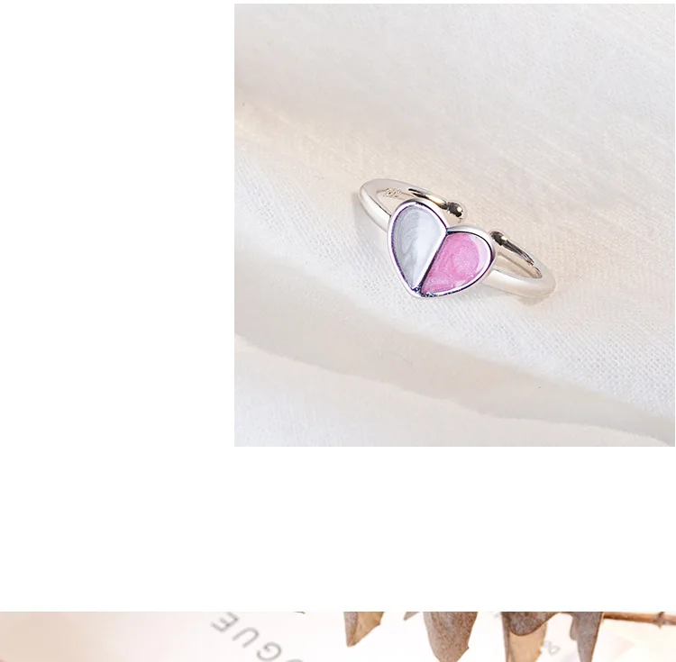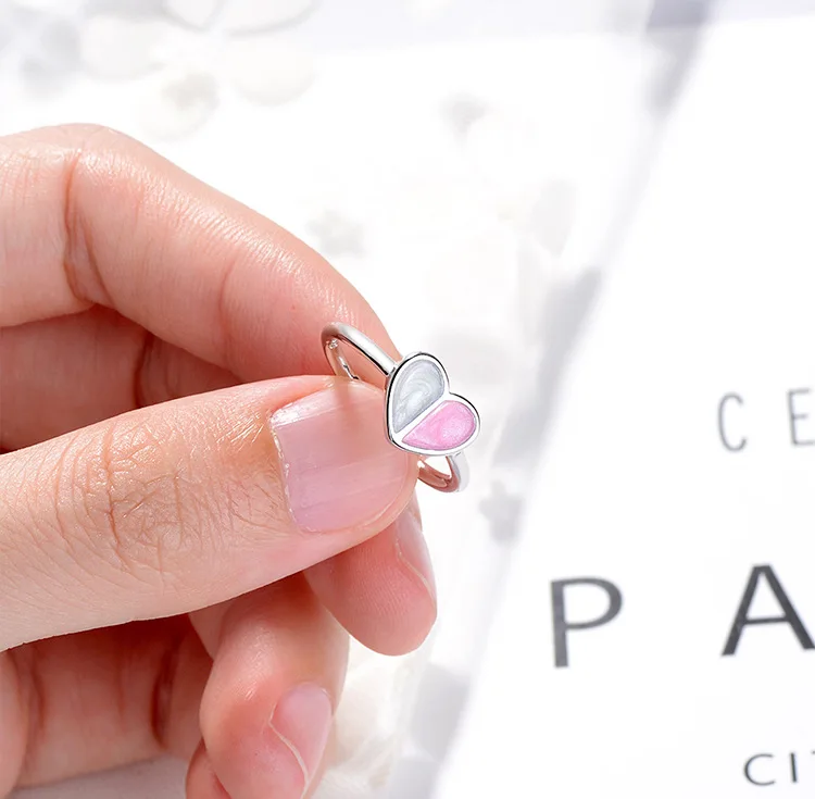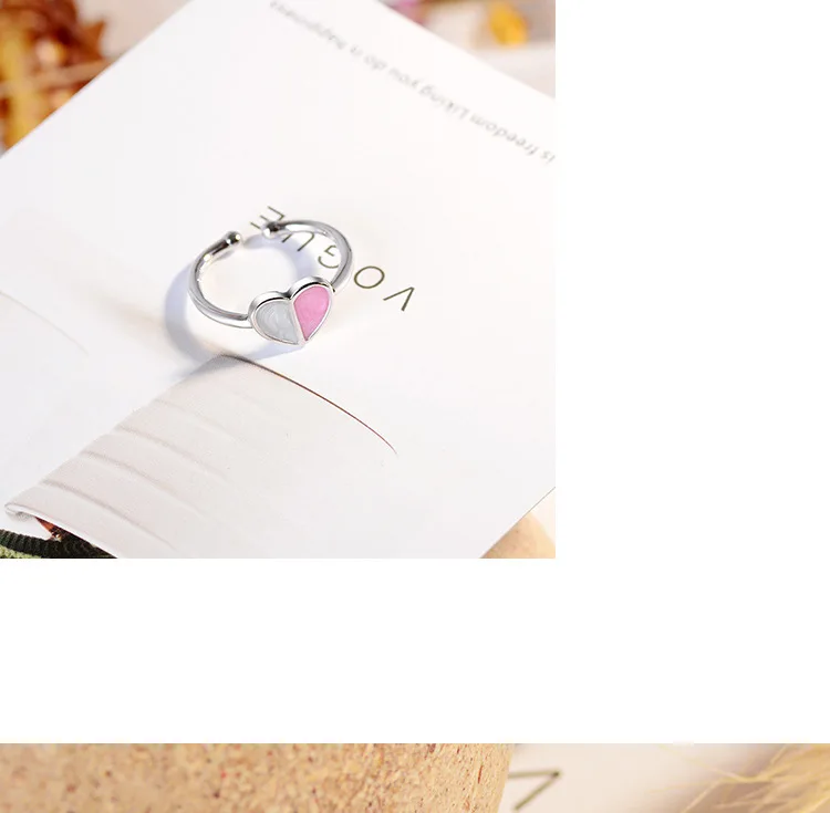 Victoria’s Vogue Fashion Sweet Epoxy Love 925 Sterling Silver Jewelry Love Heart Shaped Ice Cream Two Colors Opening Rings