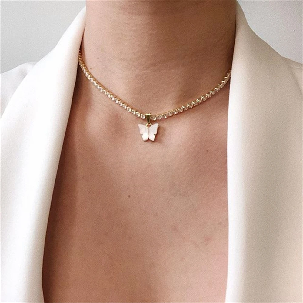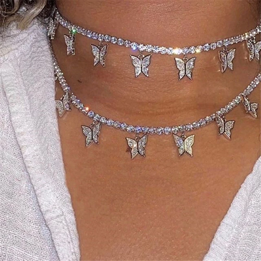 victoria’s vogue Fashion Vintage Multiple Style With Crystal Butterfly Pendant Necklaces For Women Geometric Multilevel Necklace Jewelry