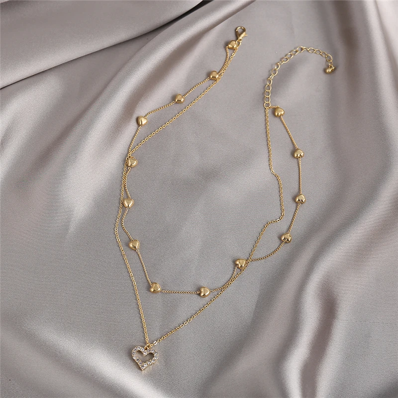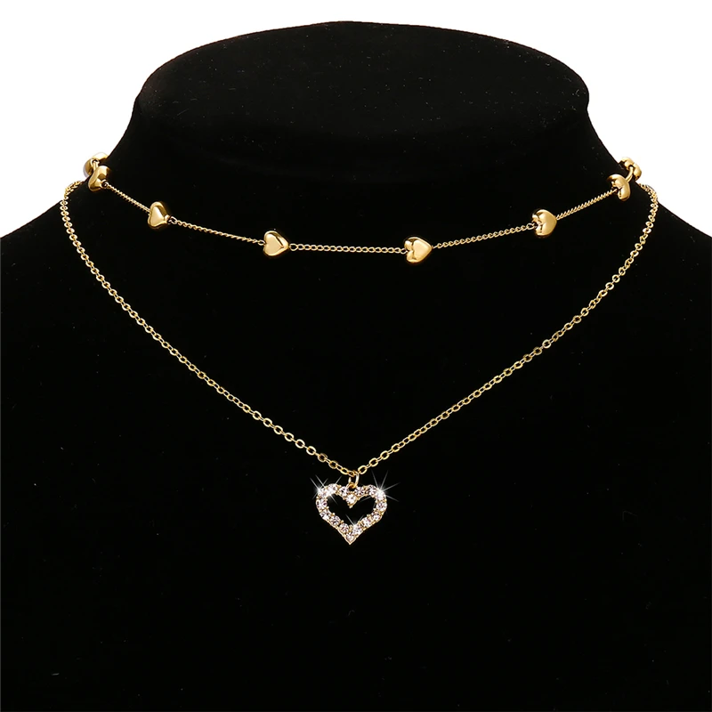 victoria’s vogue Fashion Wedding Heart Pendant Necklace For Women Multilayered Gold Crystal Heart Necklaces Valentine’s Day Gifts Jewelry