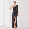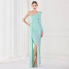 victoria’s vogue Fashion Women Light Blue Sequin Party Dress One Shoulder Ruffles Evening Dress Maxi Sexy Side Split Long Dress