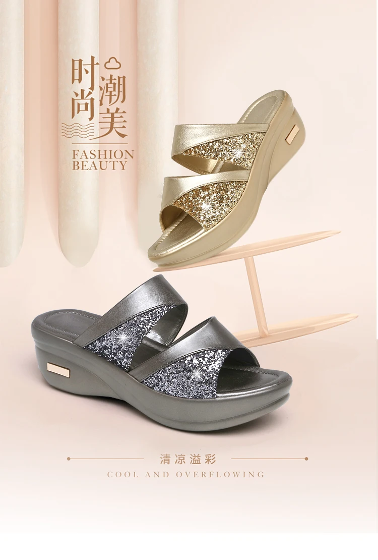 Victoria’s Vogue Female Casual Slingbacks Sandals Glitter PU Wedge Platform Comfortable Sandals for Women Spring Summer Wedge Slippers