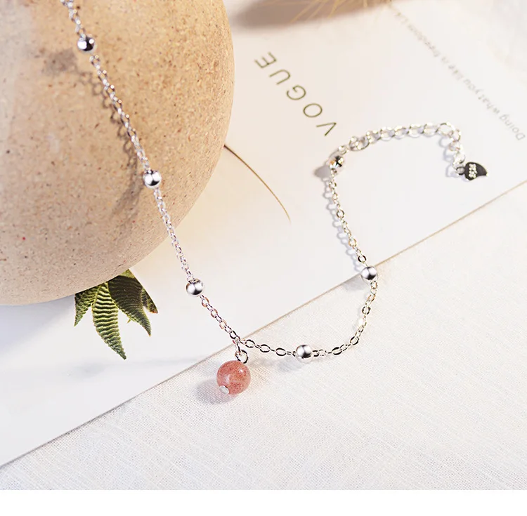 Victoria’s Vogue Female Fashion Simple Beautiful 925 Sterling Silver Jewelry Sweet Fresh Strawberry Crystal Exquisite Bracelets