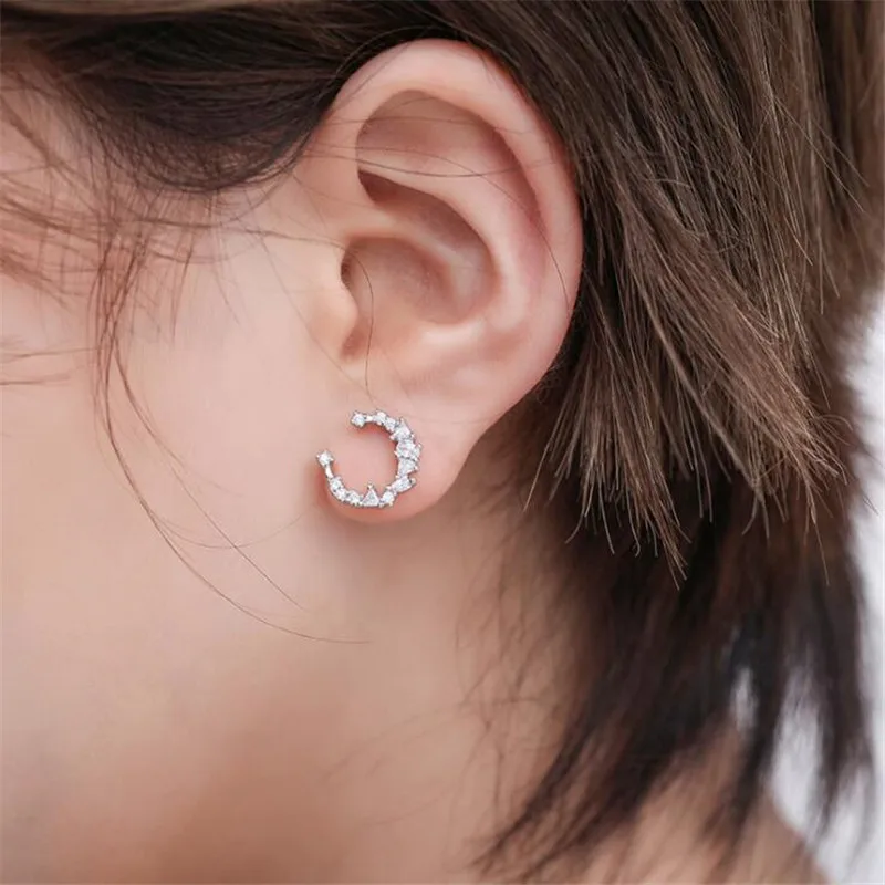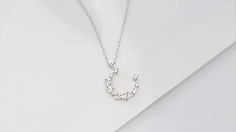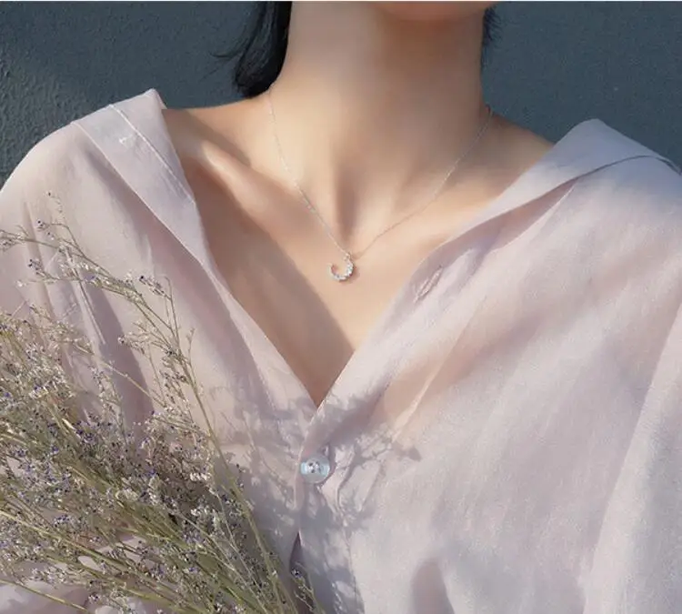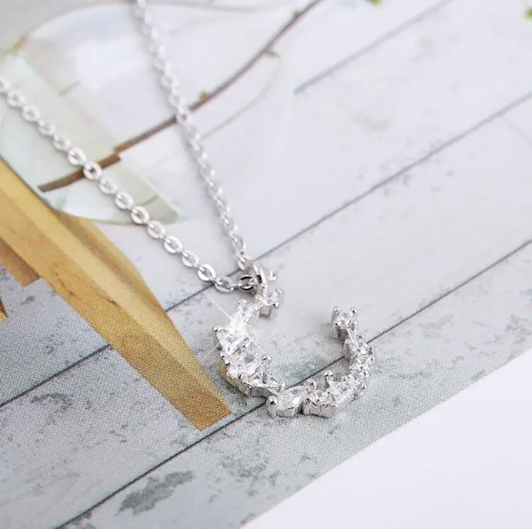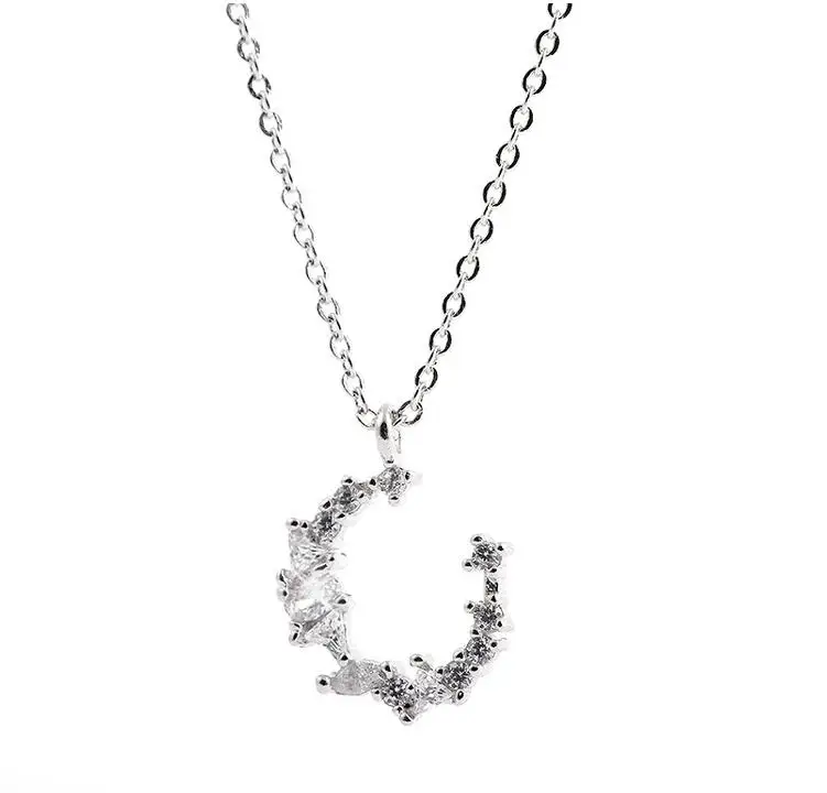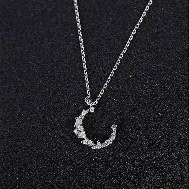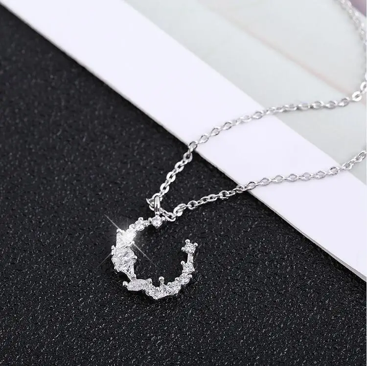 Victoria’s Vogue Flash Irregular Crescent 925 Sterling Silver Jewelry Temperament Personality Moon Crystal Female Gift Pendant Necklaces