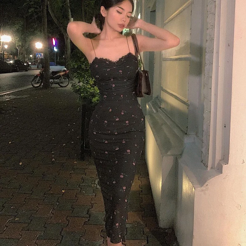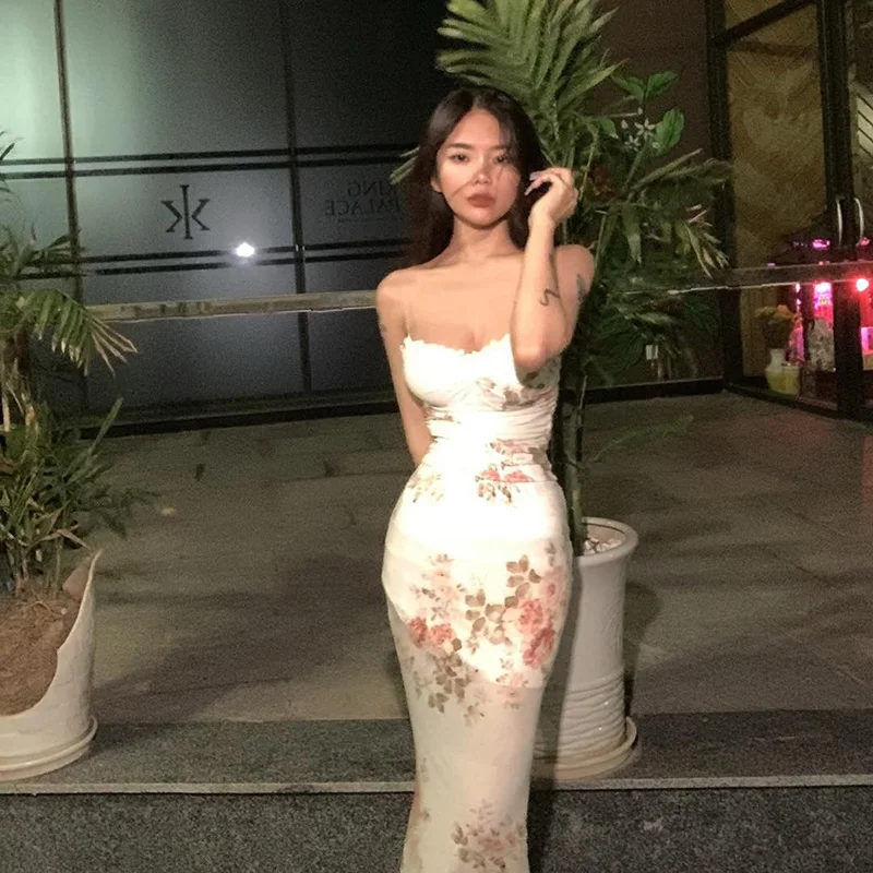Victoria’s Vogue Floral Slip Midi Dress Women Sleeveless Backless Sexy Bodycon High Split Chic Beachwear Pure Desire Spaghetti Stapdress
