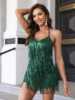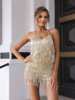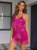 Victoria’s Vogue Fringe Trim Backless Sequin Halter Romper