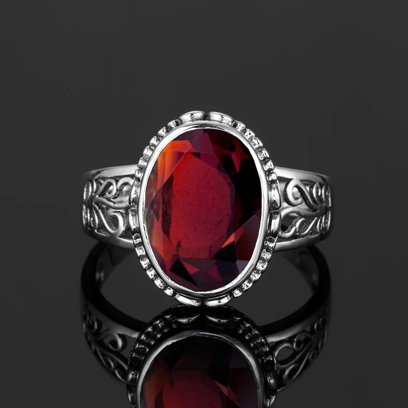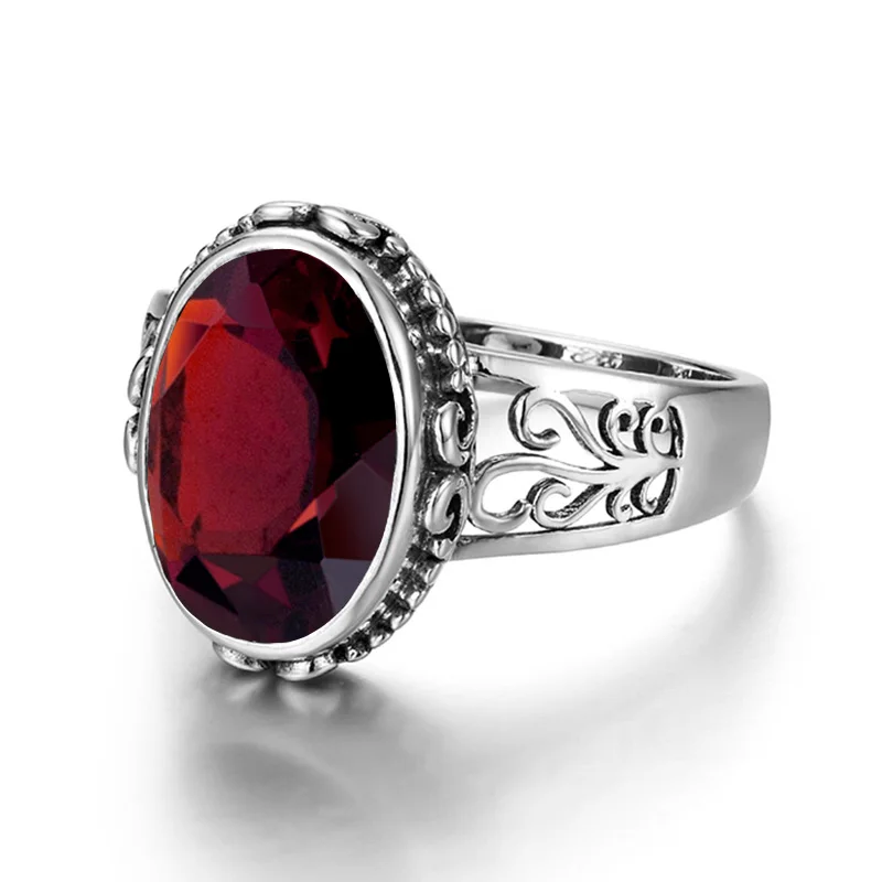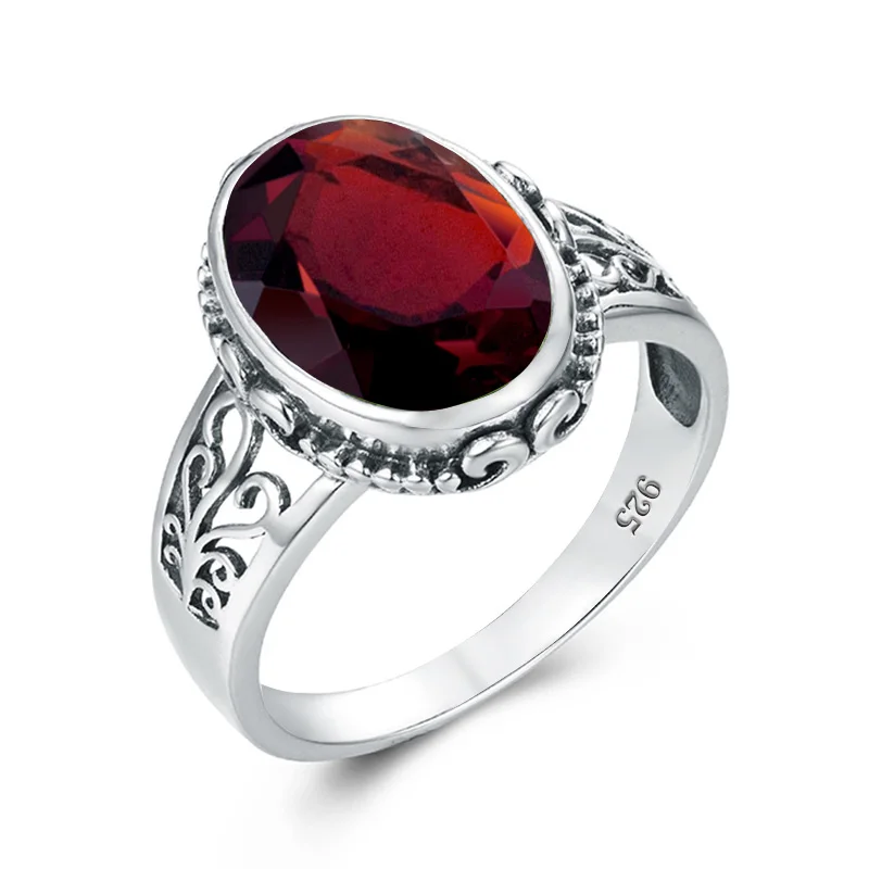 victoria’s vogue Genuine 925 Sterling Silver 10*14mm Oval Garnet Ring For Women Gemstone Classic Vintage Wedding Party Female Jewellery Dropship