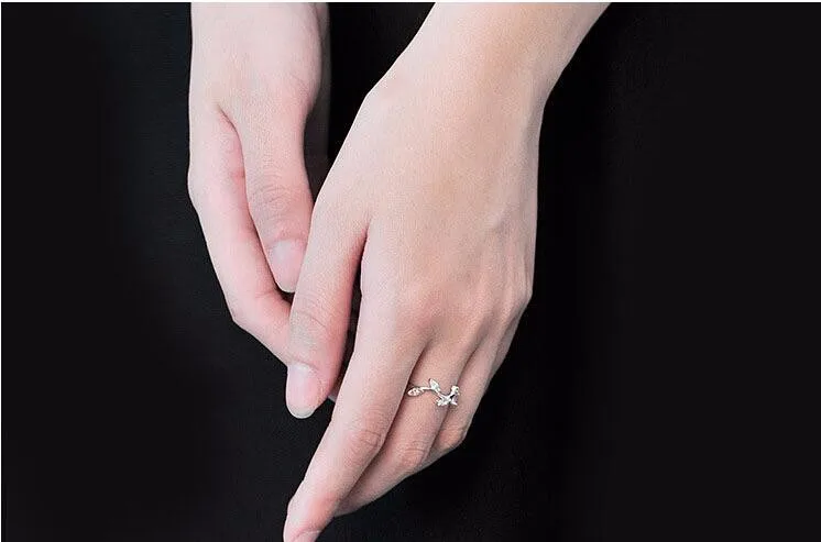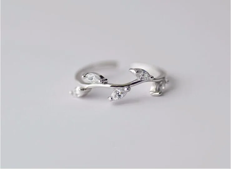 Victoria’s Vogue Genuine 925 Sterling Silver Jewelry Version Of The Beautiful Tree Branches Open Crystal Rings