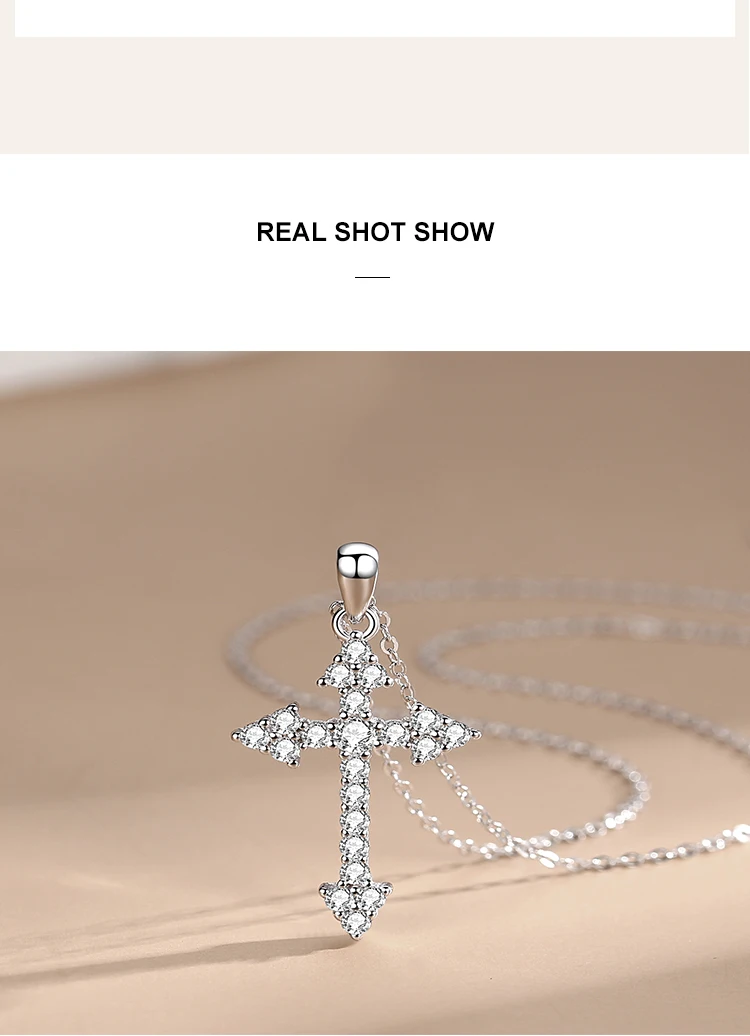 Victoria’s Vogue Genuine 925 Sterling Silver Simple Fashionc Cross Arrow Pendant Necklace For Women Girls Party Accessories Jewelry