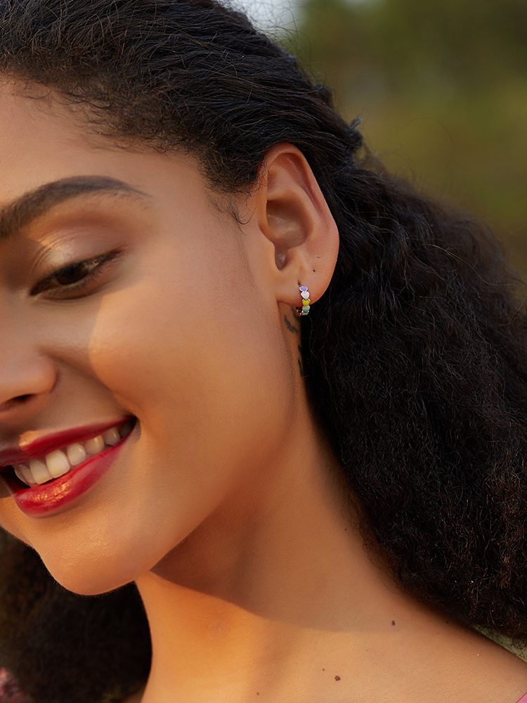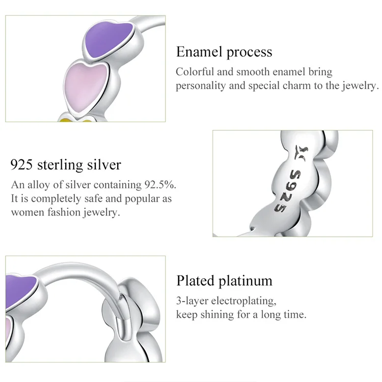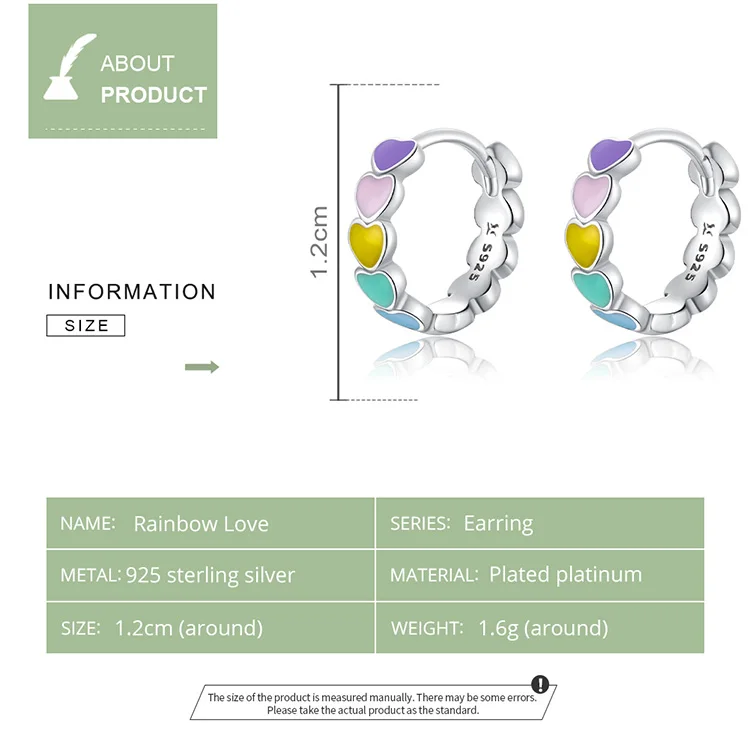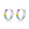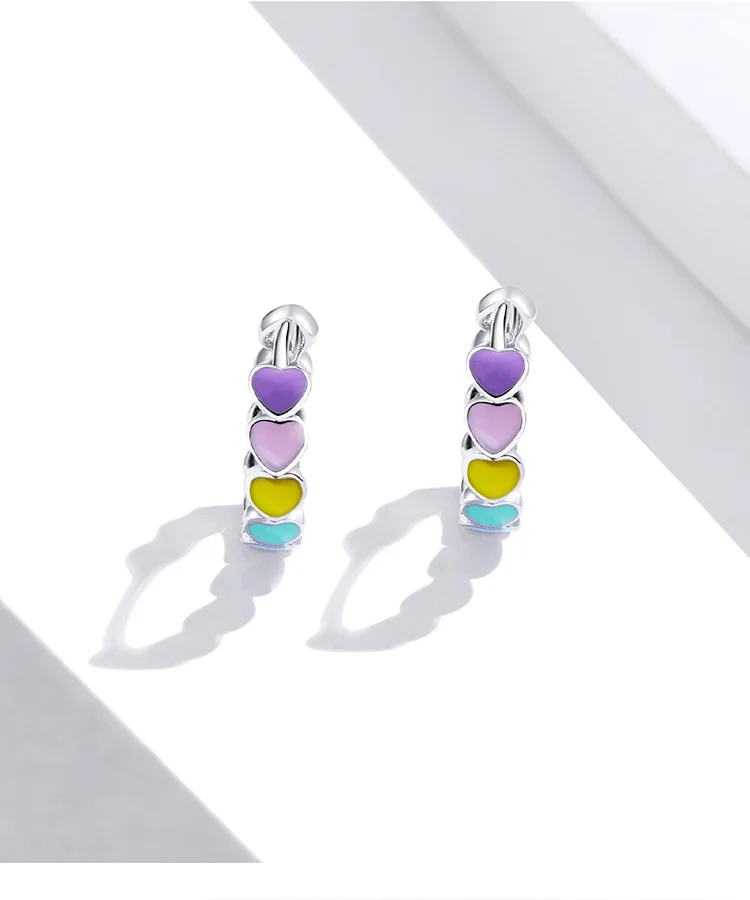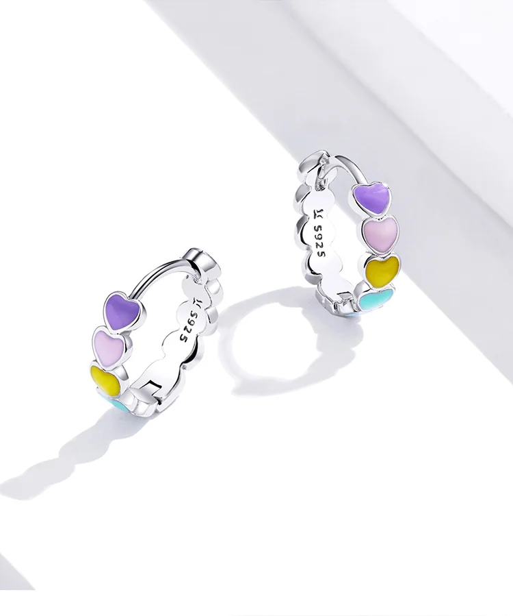 victoria’s vogue Genuine 925 Sterling Silver Women Multicolor Enamel Heart Hoop Earrings Rainbow Trend Jewelry for Girl Gift