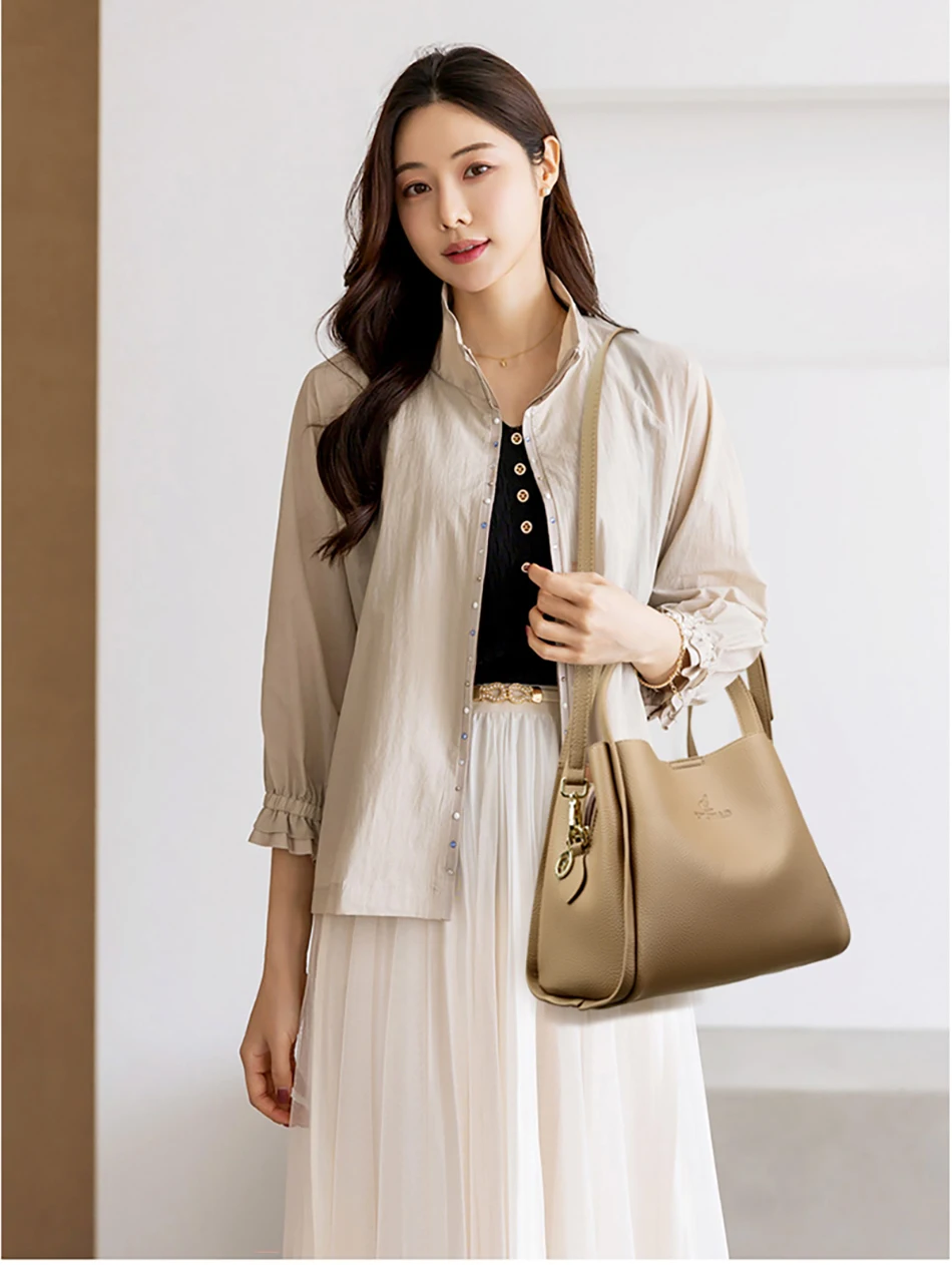 Victoria’s Vogue Retro Fashion Simple New Texture Large Capacity Shoulder Bag Women’s Handbags Portable Messenger Bucket Bag