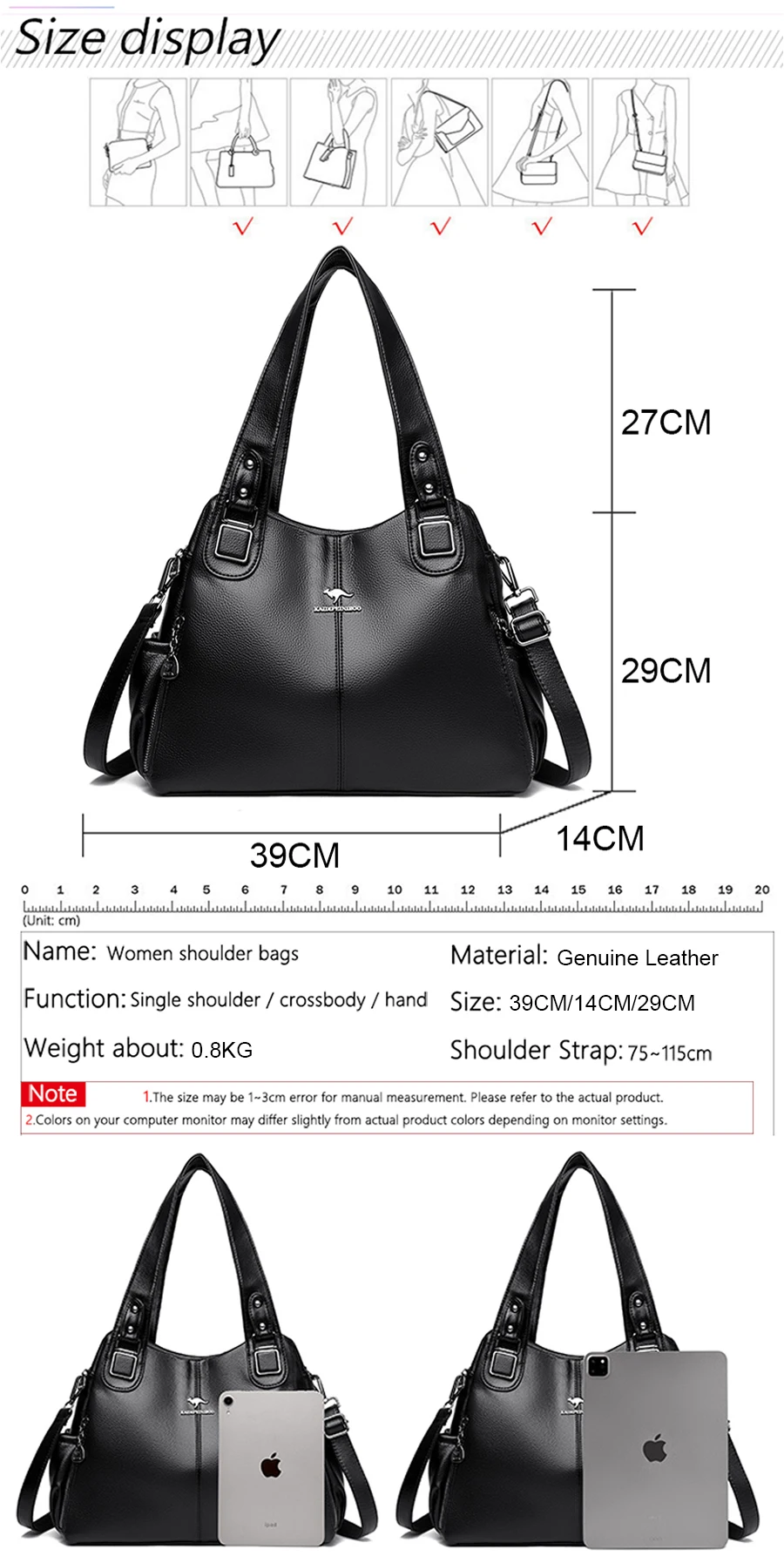 Victoria’s Vogue Genuine Soft Leather Handbags for Women Vintage Shoulder Tote Bag Luxury Designer Ladies Large Capacity Purse Bags Sac A Main