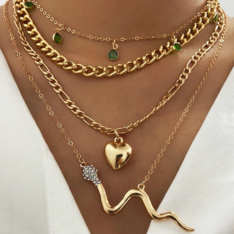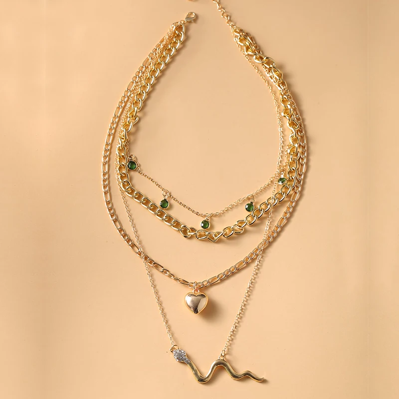 victoria’s vogue Gothtic Gold Multilayer Snake Heart Necklace For Women Bohemian Animal Green Beads Chain Necklaces 2022 Trend Jewelry