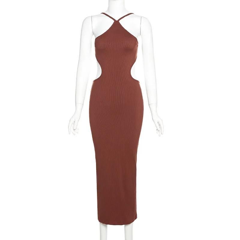 victoria’s vogue Halter Lace-up Backless Long Dress Women 2022 Spring Sleeveless Bodycon Elegant Sexy Club Party Madi Dress Vestidos
