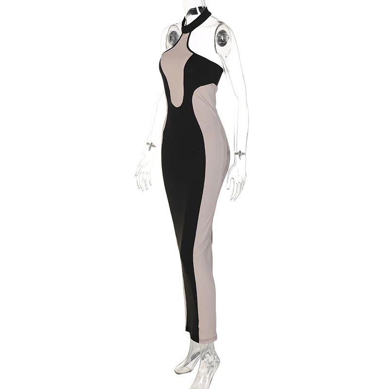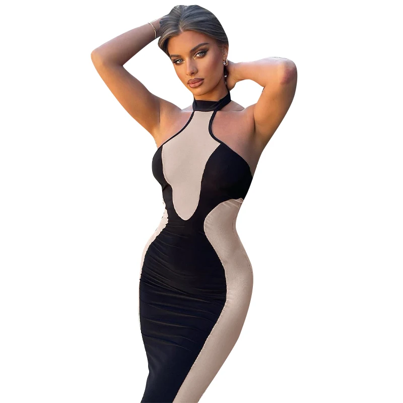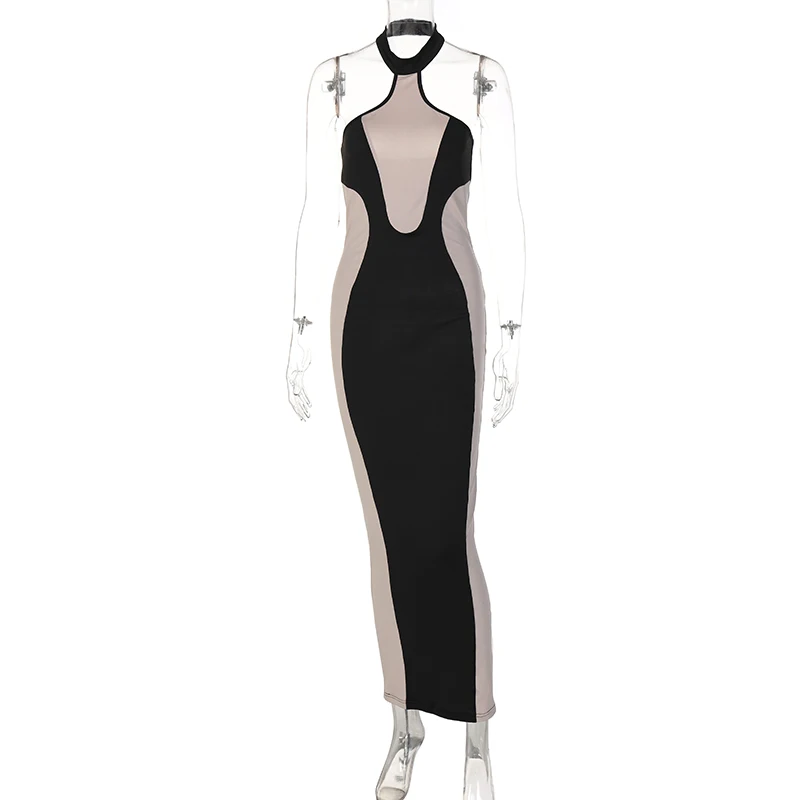 victoria’s vogue Halter Patchwork Sleeveless Backless Sexy Maxi Dress Bodycon 2022 Summer Women Outfits Beachwear Elegant Party