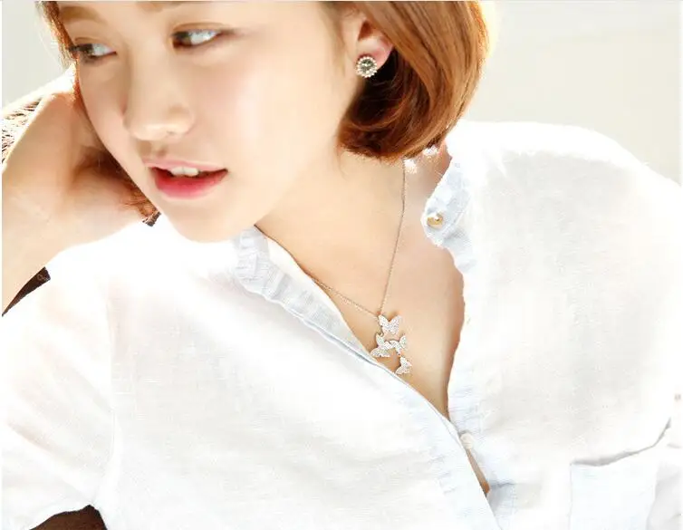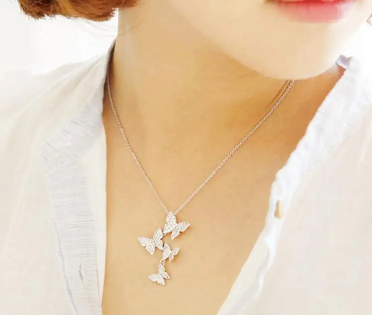 Victoria’s Vogue High-Quality New Fashion 925 Sterling Silver Jewelry Personality Butterfly Crystal Female Clavicle Chain Pendant Necklaces