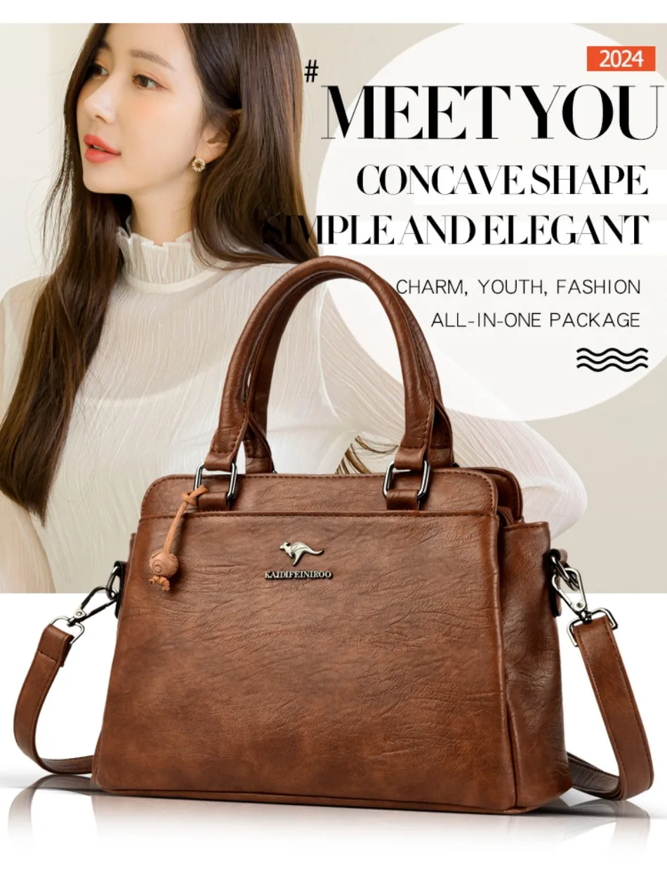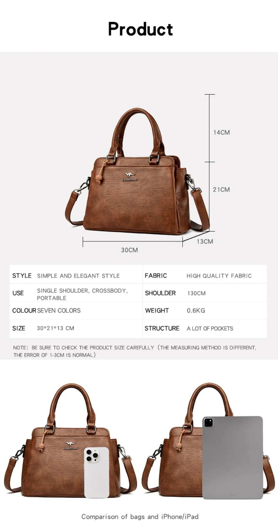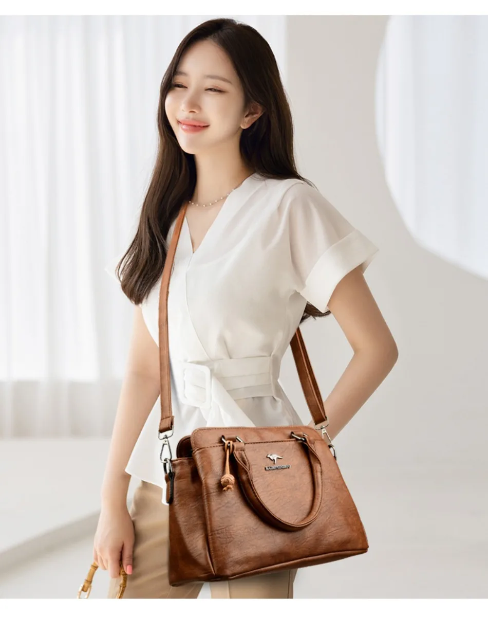 Victoria’s Vogue High-quality Soft Leather Handbags Luxury Designer 3 Layers Shoulder Crossbody Bags Ladies Large Capacity Shopping Messenger Bag