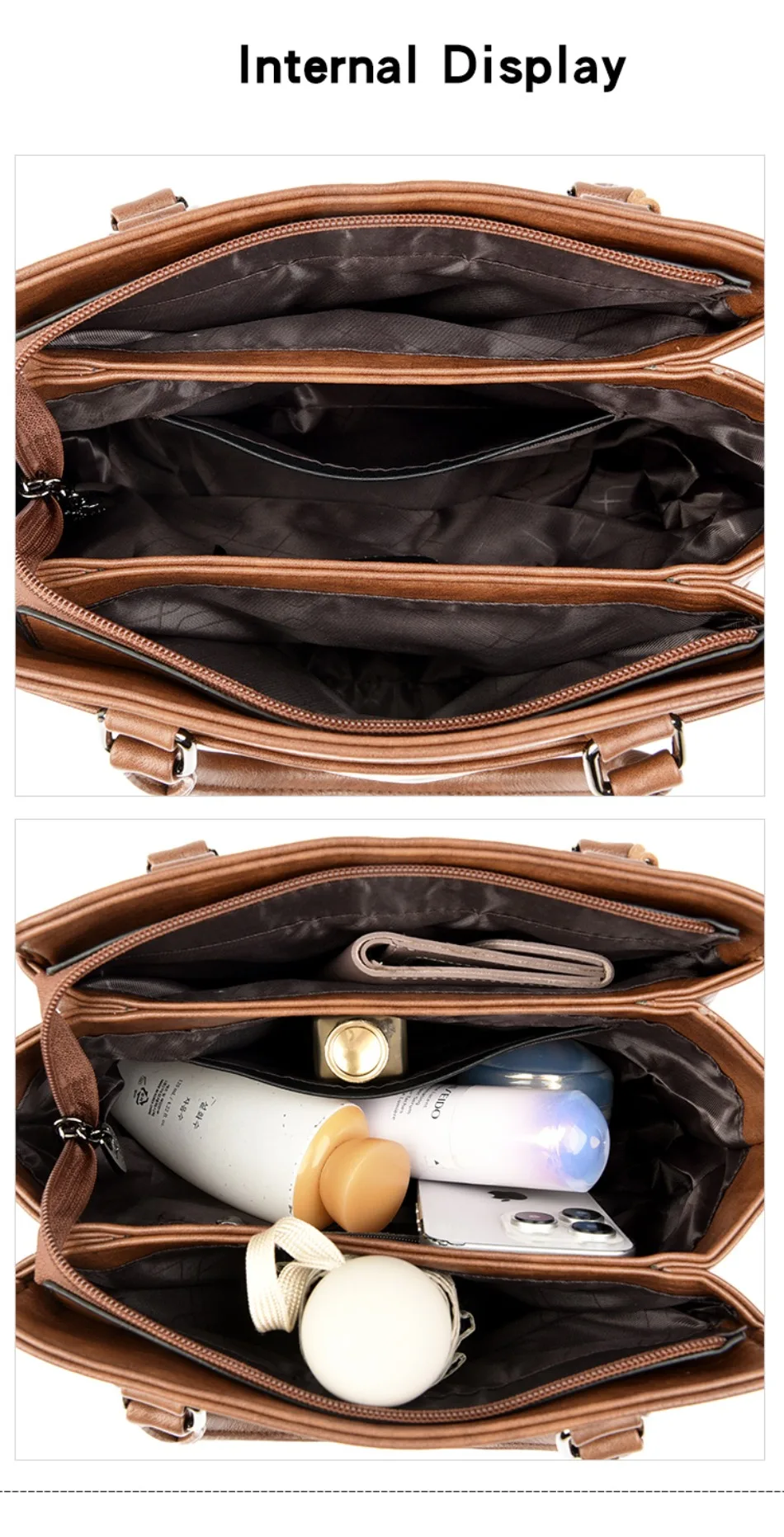 Victoria’s Vogue High-quality Soft Leather Handbags Luxury Designer 3 Layers Shoulder Crossbody Bags Ladies Large Capacity Shopping Messenger Bag