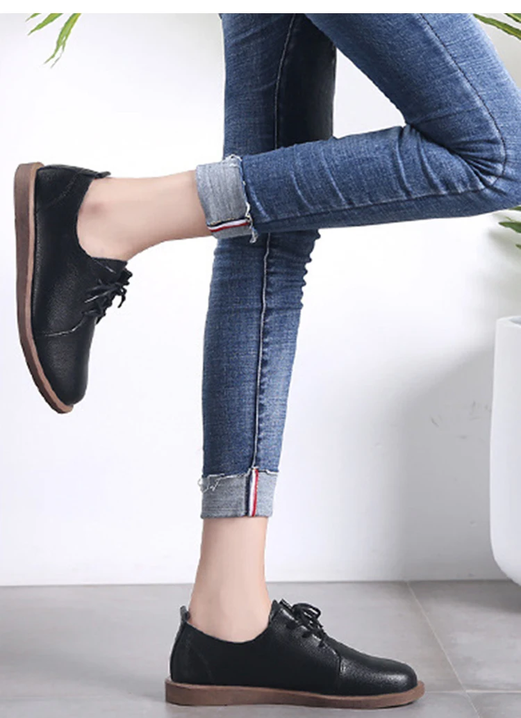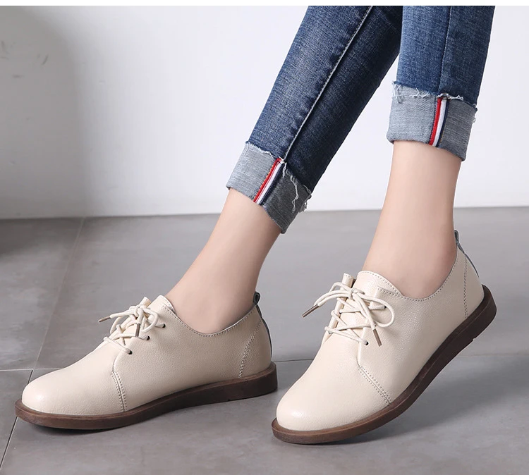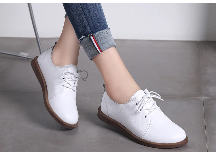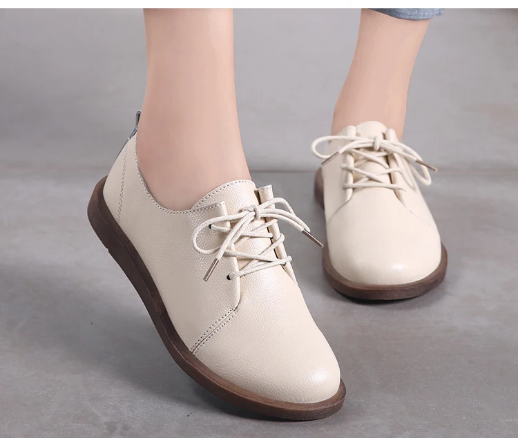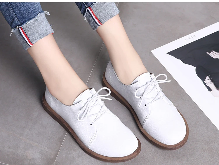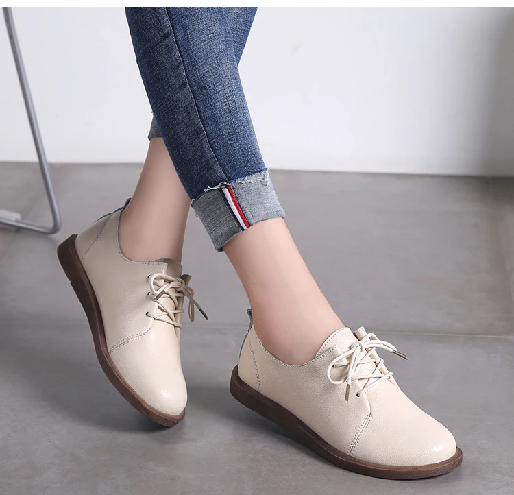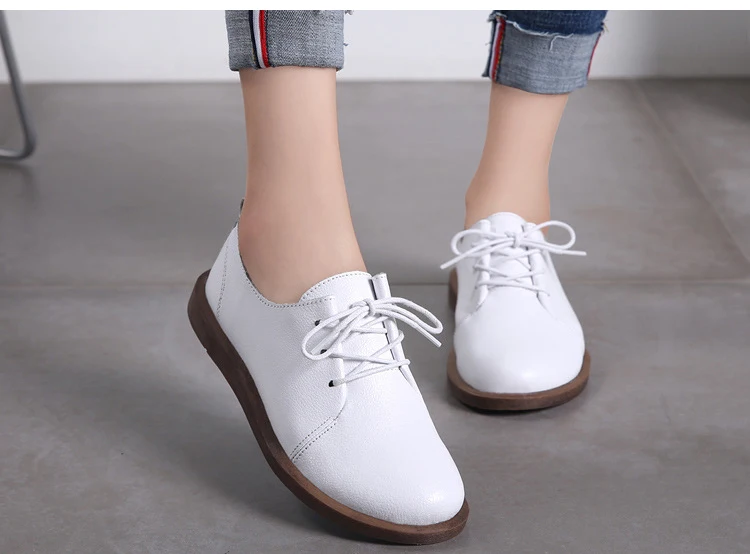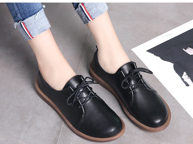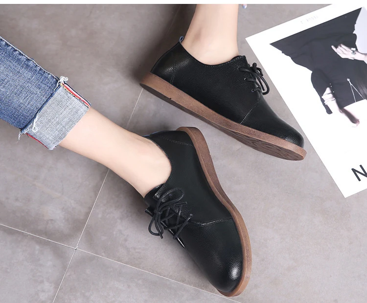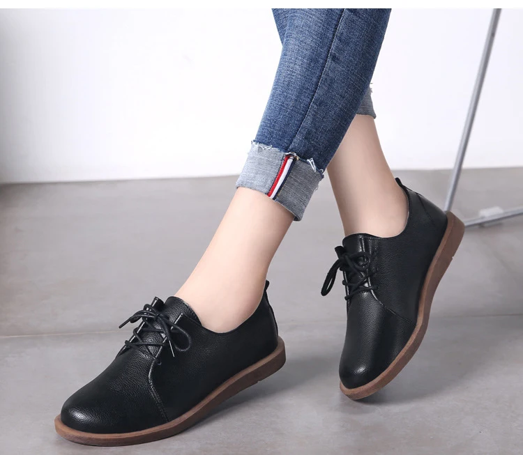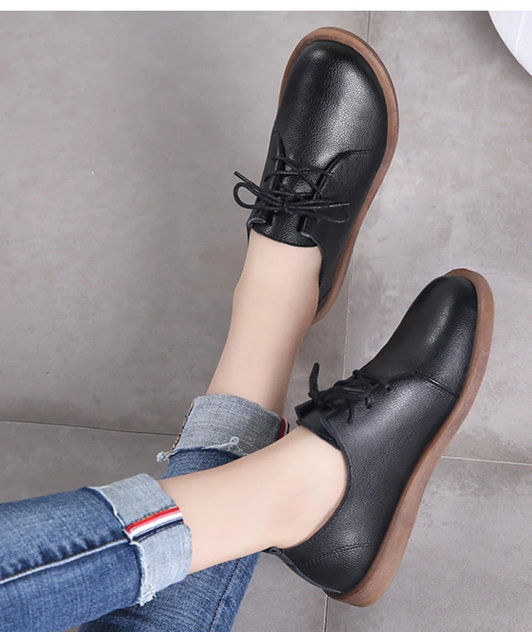 High Quality Women Shoes 2021 Genuine Leather Flat Shoes Classical Ladies Loafers Durable Rubber Hot Sale Working Footwear Femme